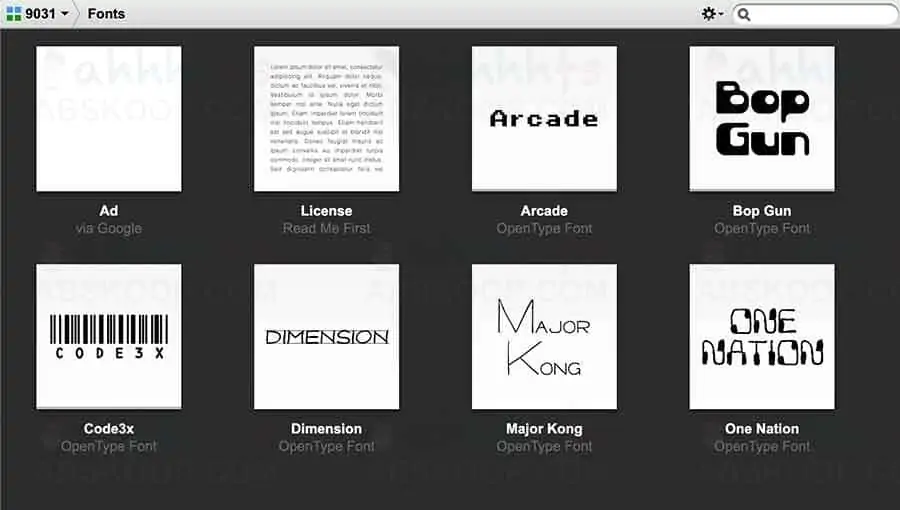 9031 Fonts是一个日本设计师足立裕司创立的字型网站,提供六种特殊的免费英文字型设计,使用者可在网站预览字体样式,包括大小写英文字母、数字和特殊符号,免费下载OpenType 格式(.OTF)将字体安装到电脑使用。9031 Fonts 有六种字型:Arcade、Bop Gun、Code3x、Dimension、Major Kong 和One Nation,分别有一般样式、圆角(Rounded)、倾斜(Oblique)、Dot Impact。