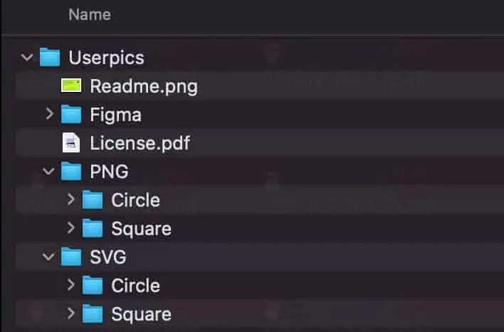 下载、解压缩免费大头贴素材包后会取得SVG、PNG 两种格式,以及圆形和方形两种风格,这些素材可做为商业用途使用,兼容于Figma 向量图形编辑器。
