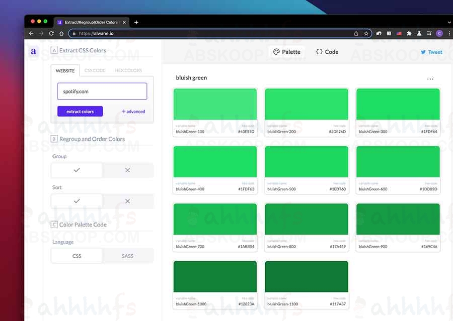 如果想参考别人网站的色系代码的时候,一般都是通过开发者工具F12快捷键查看的,而这个网站Alwane,只需要输入网站的地址,即可轻松获取该网站所有的颜色色系,包括图片的也会被分析出来。