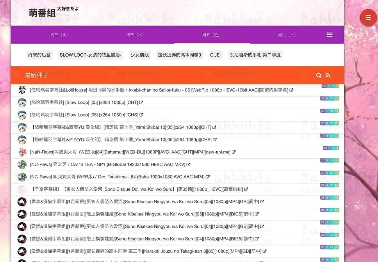 萌番组是一个动漫爱好者的动漫BT分享站,主要分享一些动漫的磁力链接(bt种子),可通过番组时间轴找番或者直接搜索,每天都有更新,更新实时。