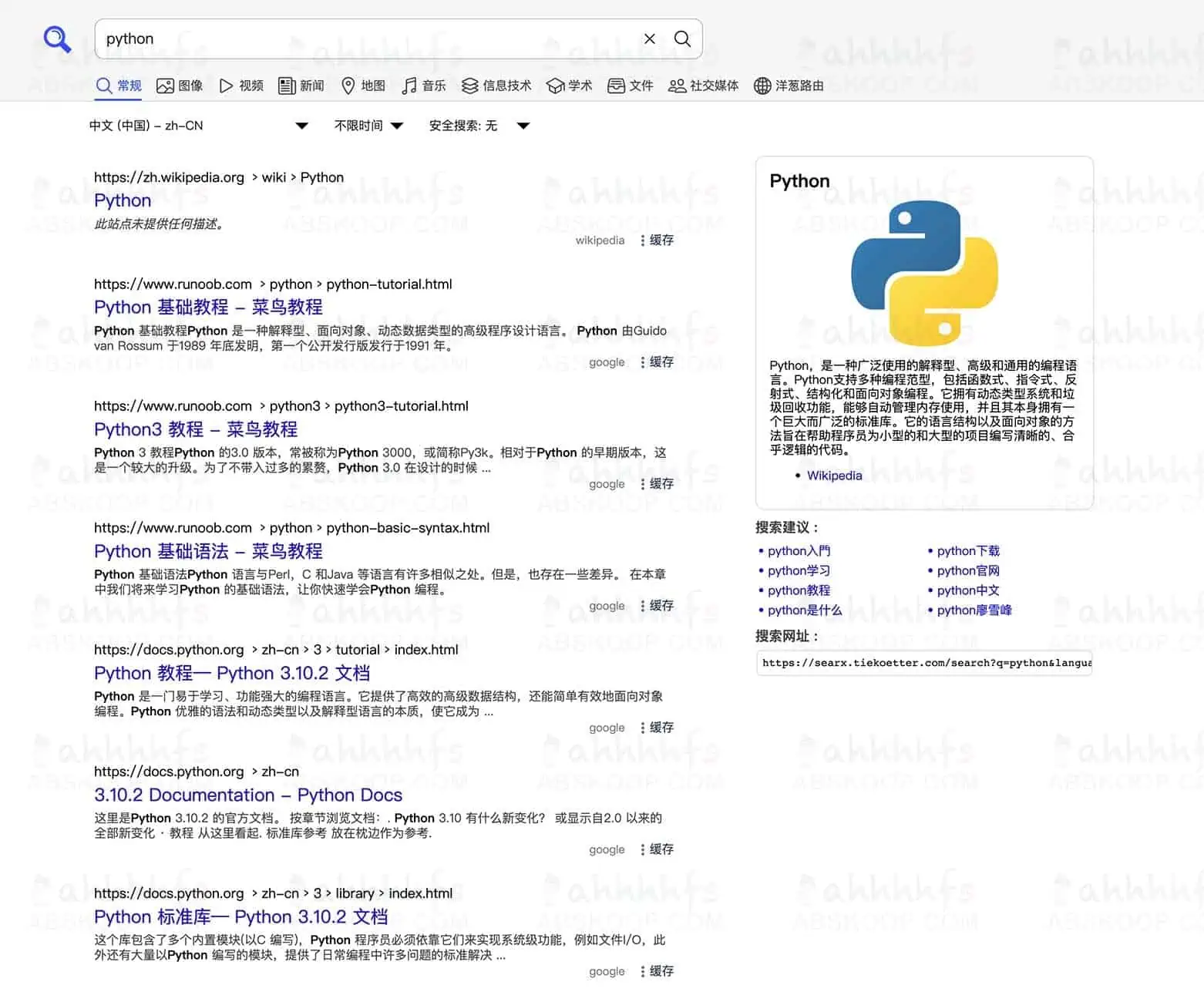 搜索一下Python,看看返回的结果。
