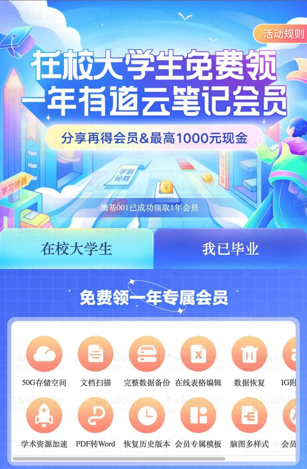 领取地址:https://note.youdao.com/mobile/VIP/college.html?entrance=1