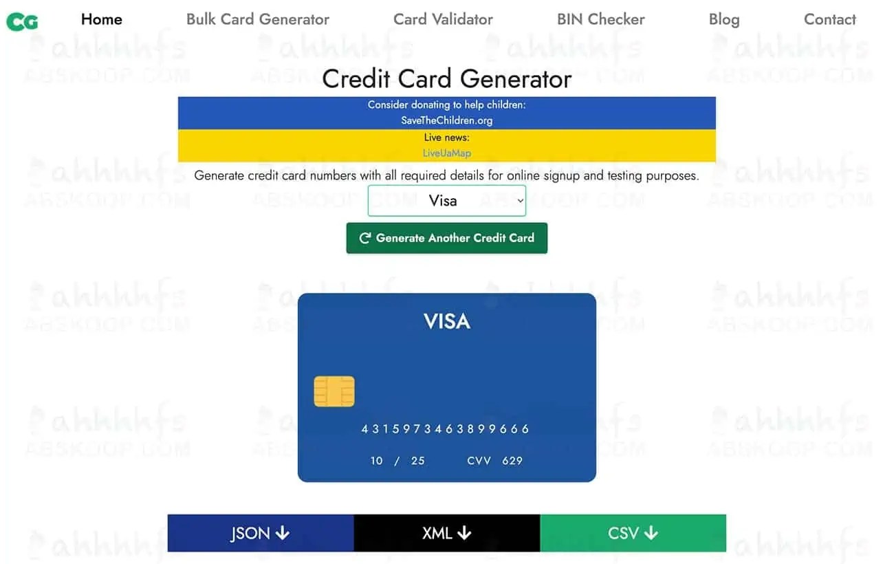 在线信用卡生成器使用简单,这些虚拟信用卡每次生成新卡时,详细信息都会更改并显示在 4 个位置。首先在卡片上,然后将这些详细信息转换为 3 种不同的格式 JSON、XML 和 CSV,根据不同场合使用不同的格式。