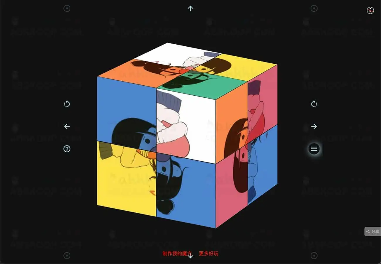 在线制作照片魔方,任意一张照片都可以做成魔方,上传一张你喜欢的照片,做成照片魔方,让朋友来复原吧,还可以设置不显示复原按钮。