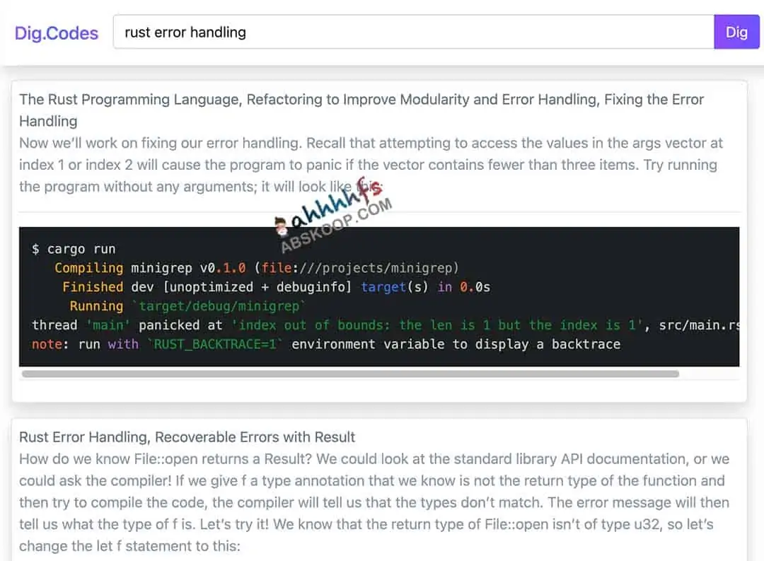 dig.codes 希望减少那一点点繁琐,在结果页主要显示代码,通过看这一页的结果快速解决编程中的问题,比如“js 数组 方法”。如果需要深入了解这个问题,再点击原始链接查看详情。
