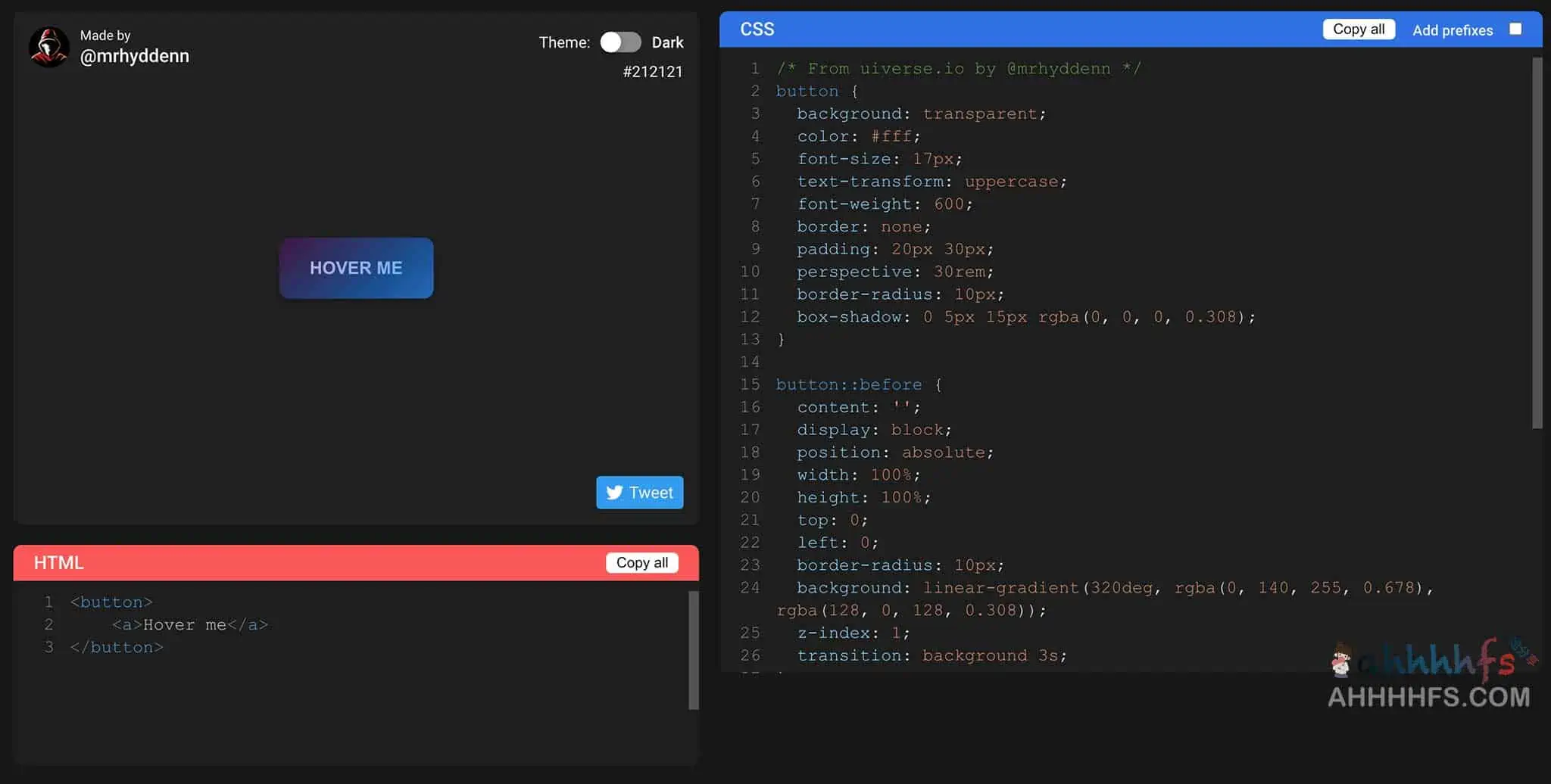 uiverse.io是一个开源前端UI组件代码拷贝库,拥有四百多漂亮的前端UI组件,并且都是直接提供代码的,可以直接拷贝使用的那种,非常适合Ctrl+C和Ctrl+V的用户,并且是开源免费的,当然你也上传自己的作品了,注册登录即可,人人为我我为人人嘛。