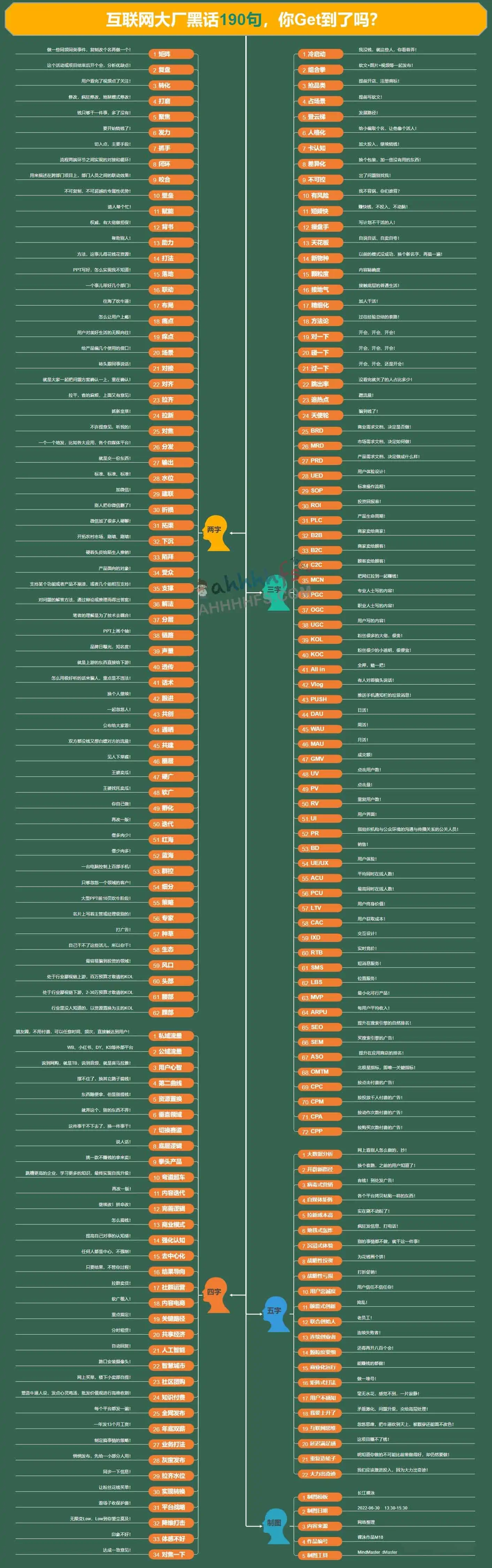 互联网大厂黑话190句,你get到了吗,图片有点大,加载有点慢哈,手机观看效果不够电脑版清晰。
