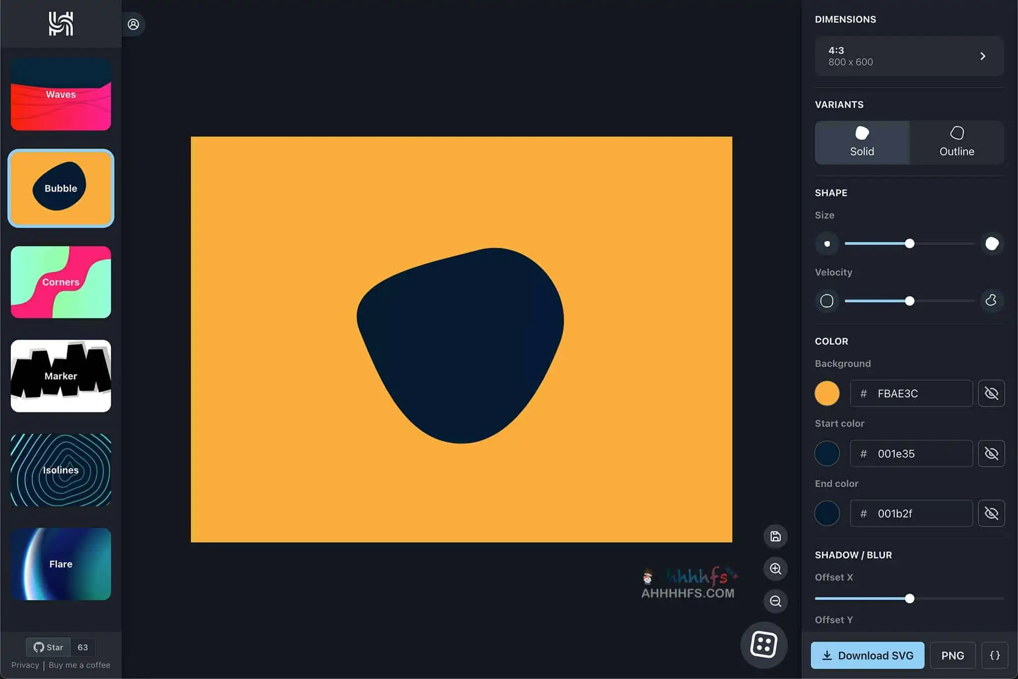 Heazy,一款在线的SVG 背景图生成器,能够让你的网站背景、设计文稿、PPT、海报背景等等生成酷炫的SVG背景图,使用的时候,根据提供的预设SVG背景图模版进行手动参数调整或者随机推荐,即可创作出独一无二的SVG背景图,而A姐体验了一下发现,下载支持SVG和PNG格式,使用无需注册,使用简单易上手。