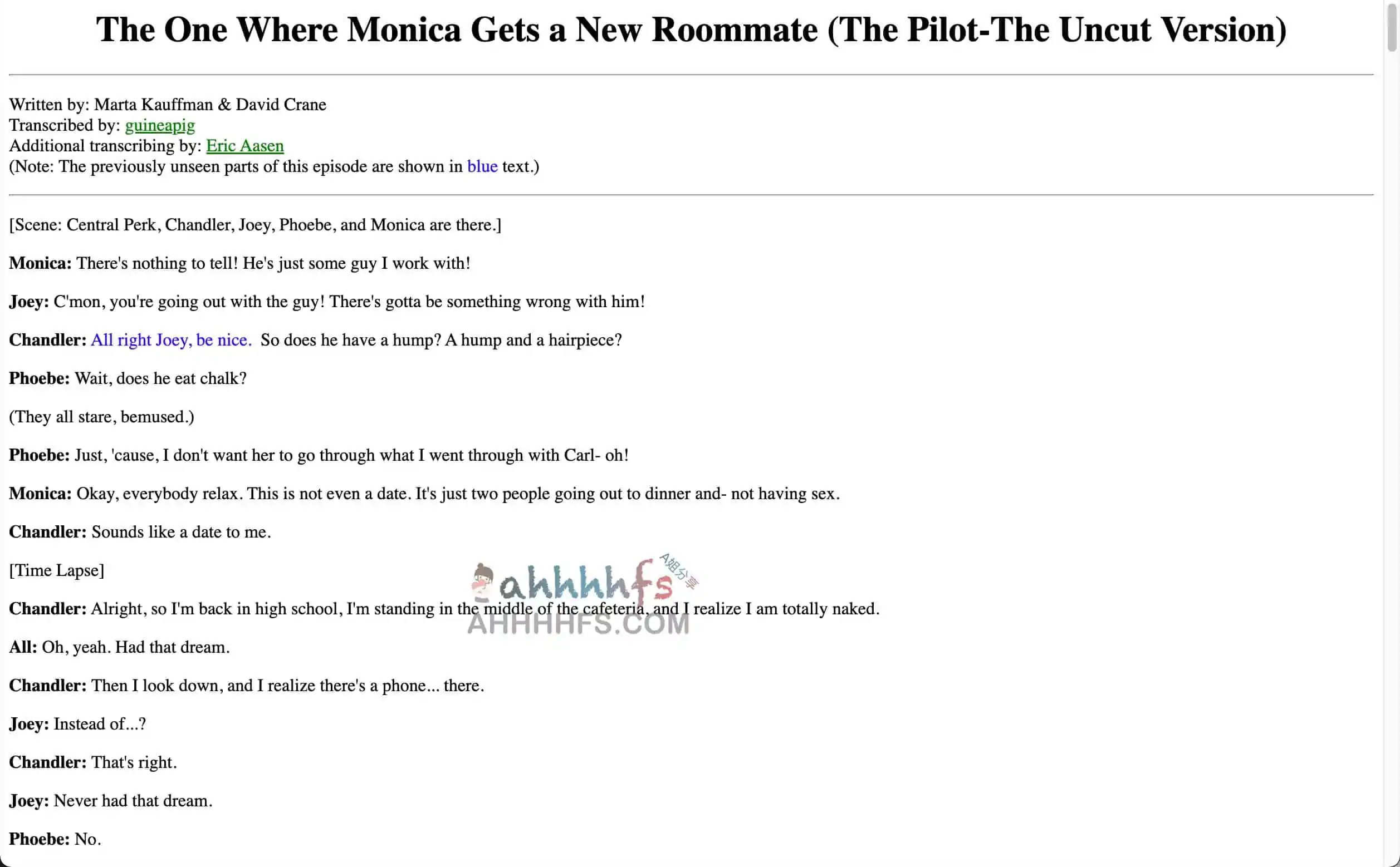 Learn English with `Friends`一个排版好看并且内容准确的老友记剧本 PDF,A姐看了,真的是无敌的简洁整齐,可以打印出来学习英语,晚上刷剧,早上读英语,都安排好了,果然是学习英语佳品。