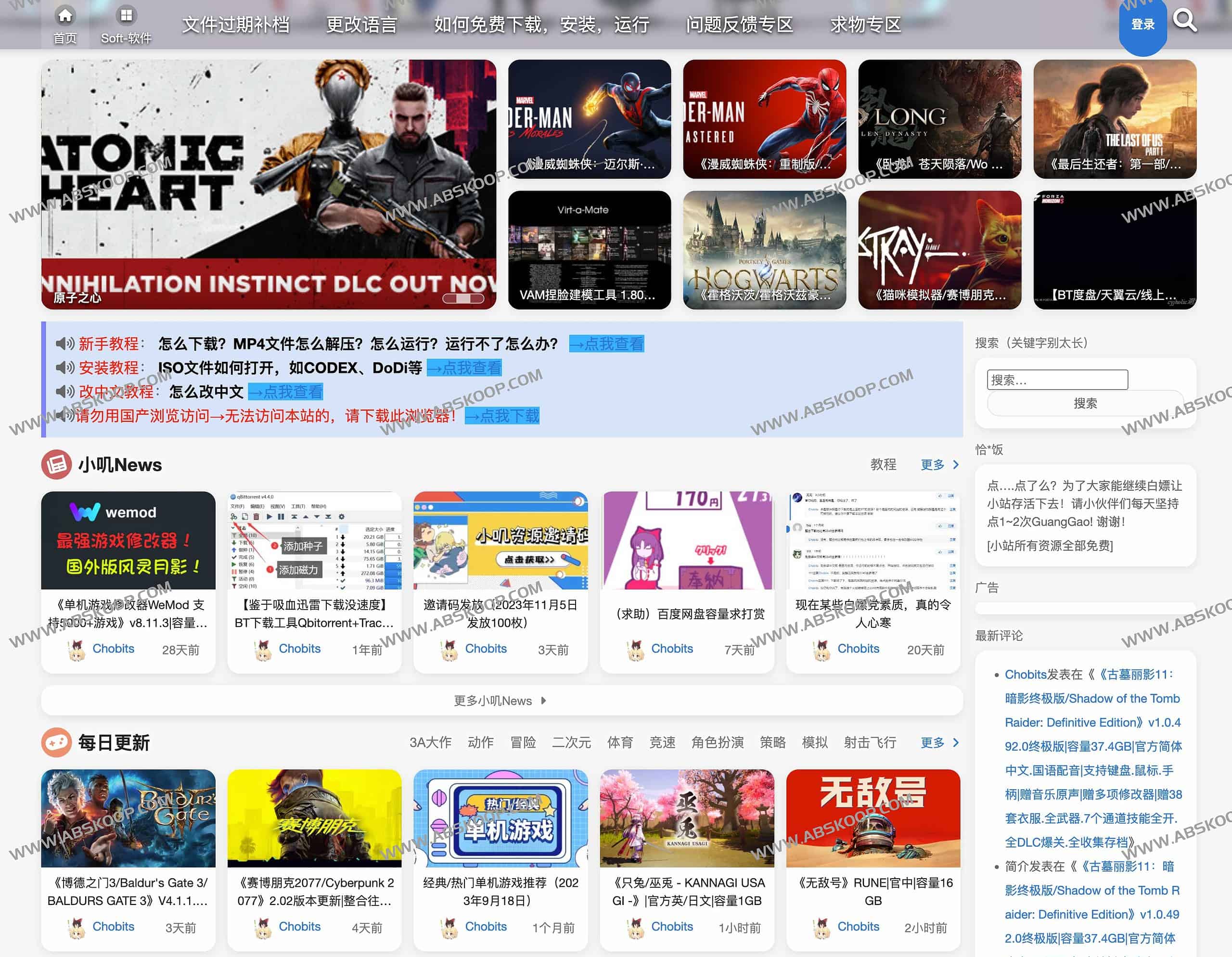 小叽资源是一个免费分享各种游戏的下载站,让你免费白嫖各种游戏,像GTA、刺客信条、地平线5等等热门的游戏都可以白嫖到,需要什么游戏搜索即可,每款游戏都有介绍和保姆级的安装教程,非常贴心了,而且社区资源非常丰富,除开白嫖各种游戏外还有一些软件和各种动漫。