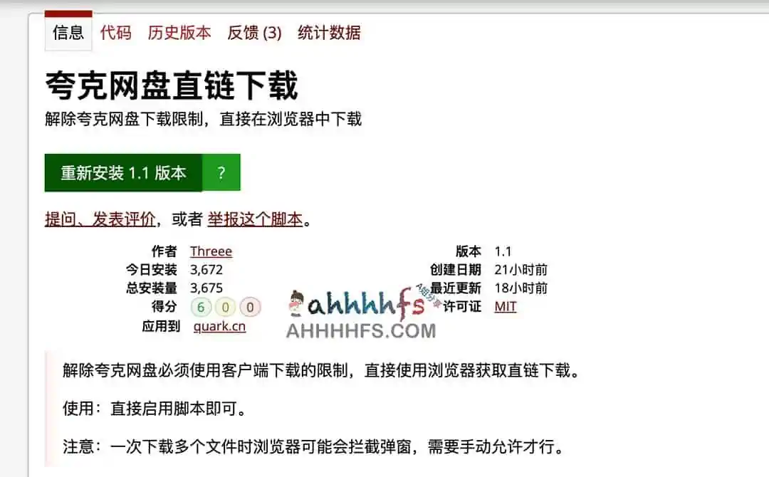夸克网盘直链下载脚本地址