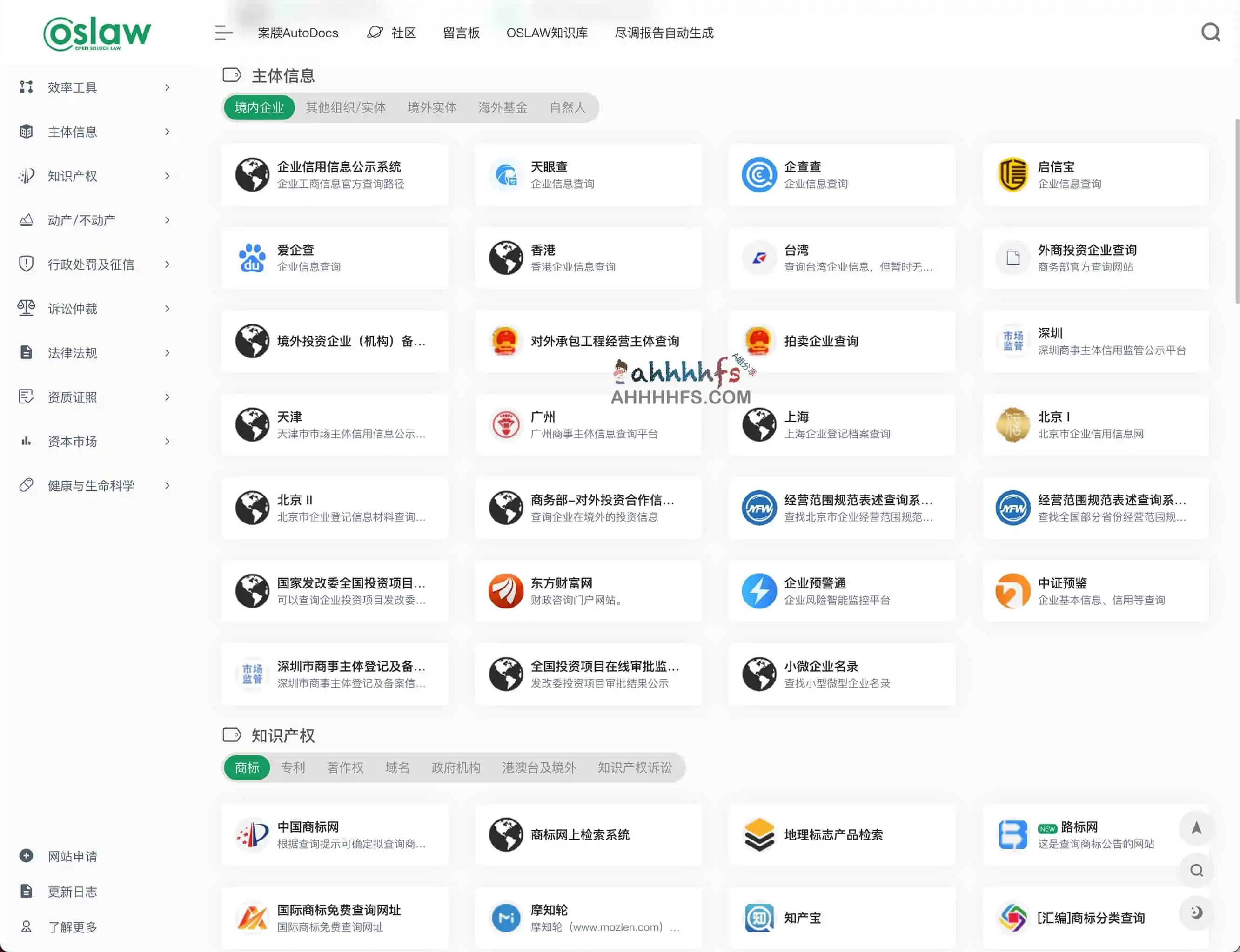 法律法规常用网址导航主要收录包括企业主体信息查询、知识产权、不动产、行政处罚及征信、诉讼仲裁、法律法规、资质证照等等各个门户类型的常用网址,不仅是律师,平常普通用户也可能会用到,非常的不错。