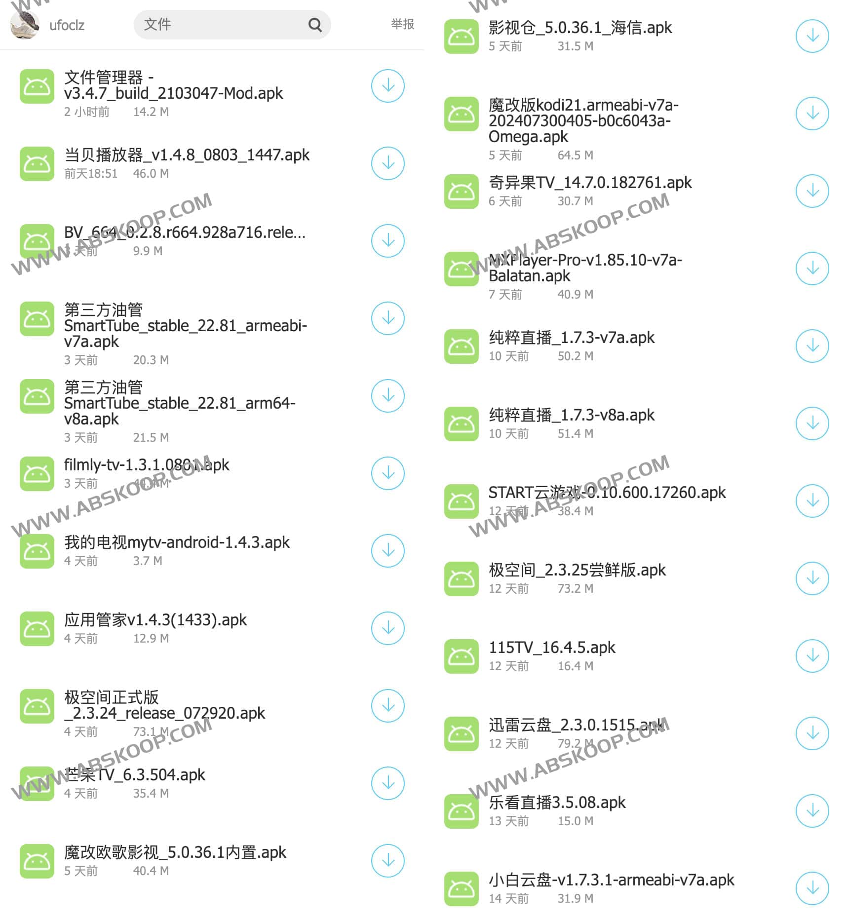 一些TV版电视盒子APP合集,由网友收集,不断更新,支持手机端和电视盒子TV端,非常贴心,满足不同用户的需求,软件通过网盘的方式分享的,而且绝不是下载速度几KB的百度网盘,而且还在不断更新中。