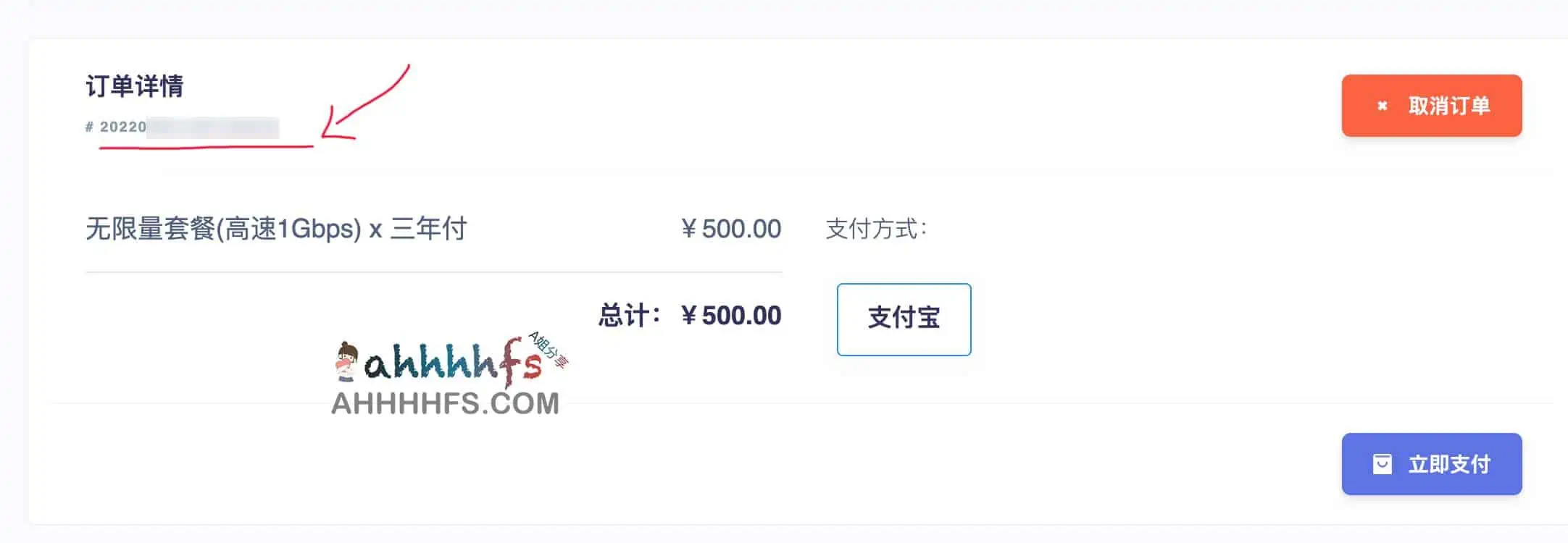 2.选一个月套餐12块的提交,不要支付,然后复制订单号