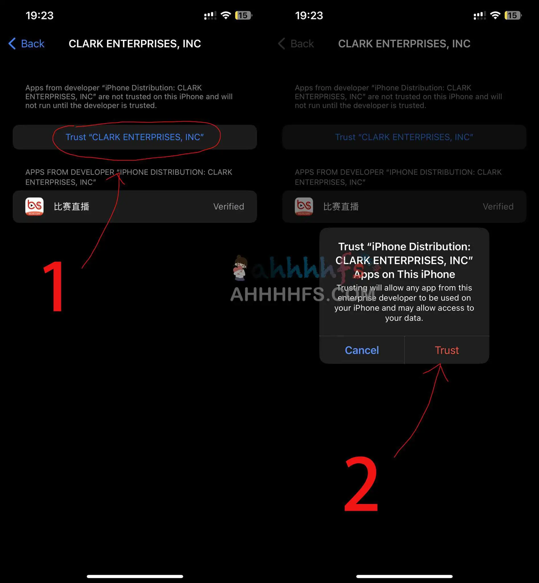 由于这个比赛直播app没有上架iOS商店,想安装在ios端的话需要点击信任,具体操作如下
