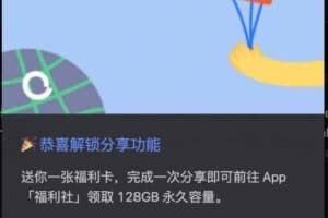 1.分享功能已上线,分享一个文件,可在福利社领取永久容量120G
