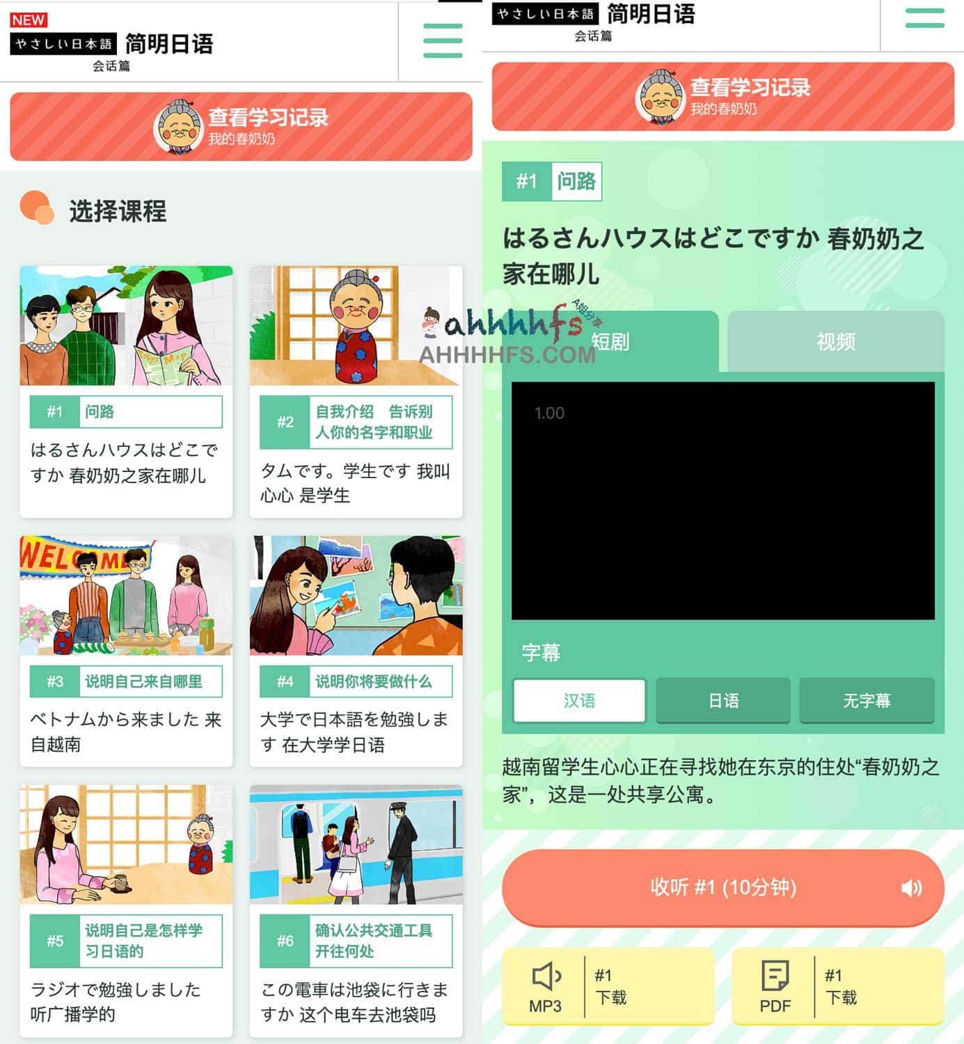 NHK简明日语,日本唯一的公共传媒机构NHK日本广播协会推出的,免费日语入门学习课程网站,提供丰富多样的日语免费课程和学习材料,课程一共48课,可以掌握基本的日语会话,包括日常的寒暄语以及方便的旅游用语等,满载旅游和文化信息,全部课程的音频、文档,均可免费下载。