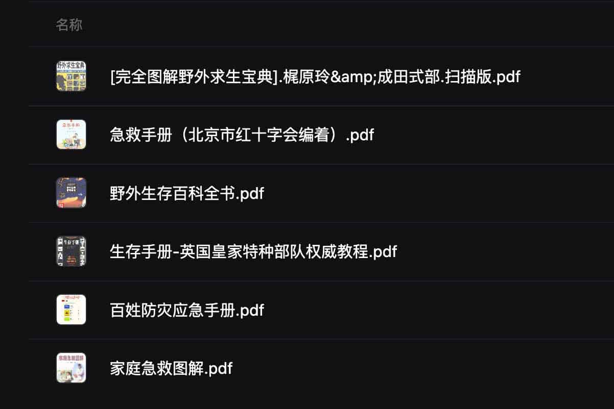 一些野外求生手册集合,包括完全图解野外求生宝典、急救手册、野外生存百科全书、生存手册、百姓防灾应急手册和家庭急救图解等,阿里云盘和夸克网盘资源,有需要的可以保存学习。