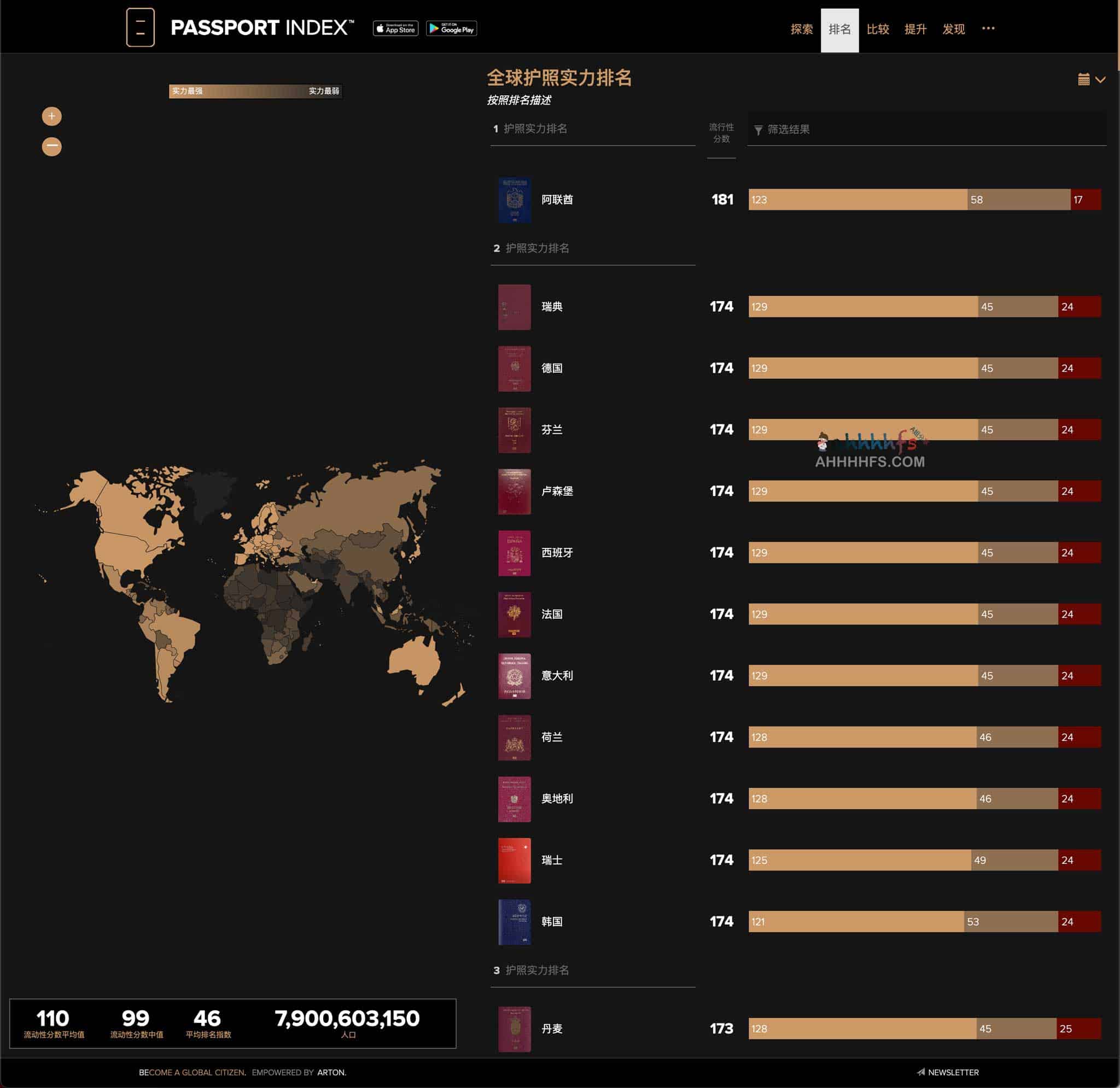 地址:https://www.passportindex.org/cn/byRank.php
