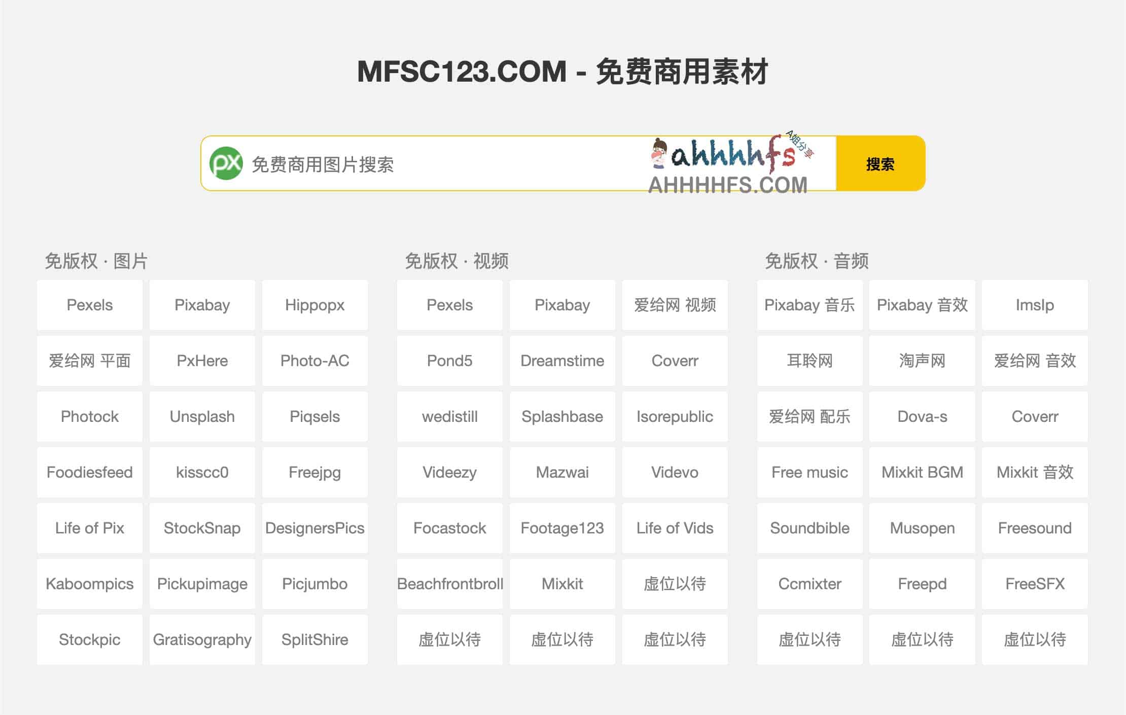 MFSC123是一个CC0协议免费免版权商用素材导航网站,网站收集了关于免版权图片、音频和视频素材。版权意识近年来逐渐提高,侵权事件也随之频繁发生,很多人侵权其实都是在不知情的情况下无意侵犯,还有一些恶意版权碰瓷的,让人深恶痛绝,为了方便自己日常使用,故创建了此站点,感兴趣的可以欢迎分享给有需要的人。