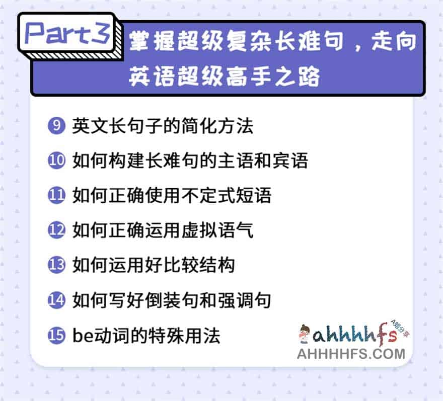 从简单到复杂,到长难句,通过3大阶段的进阶学习,循序渐进,只要能造出这些句子,其中的知识点也能掌握并融会贯通。