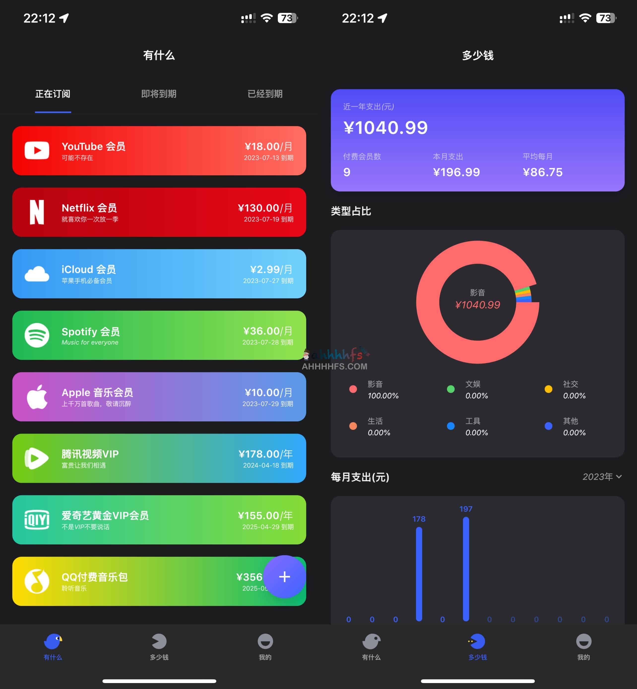 有数鸟,一款免费国内外一站式会员订阅管理iOS端软件,平常经常买买买的用户,开通订阅了各种app和网站的会员,有时候忘记关闭或者续费了,可以试试这款一站式会员订阅管理,支持YouTube、Apple、Netflix、Spotify、腾讯视频、爱奇艺等等国内外各种平台,而且还可以自定义添加,界面UI也简洁,而且还有费用管理、到期时间等等功能,一目了然,非常不错。