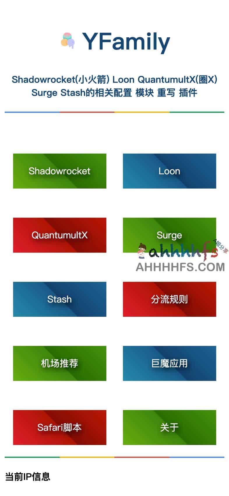 YFamily是一个专门收集Shadowrocket(小火箭) Loon QuantumultX(圈X) Surge Stash配置 模块 重写 插件集合的网站,支持iOS端一键直装shadowrocket模块 loon插件 quantumultx重写 ;如仅需复制链接,请在浏览器中请求桌面版网页,非ios端点击按钮即复制链接,请手动将链接粘贴到shadowrocket模块/loon插件/quantumultx重写资源,资源非常丰富,感兴趣的同学可以打开试试。