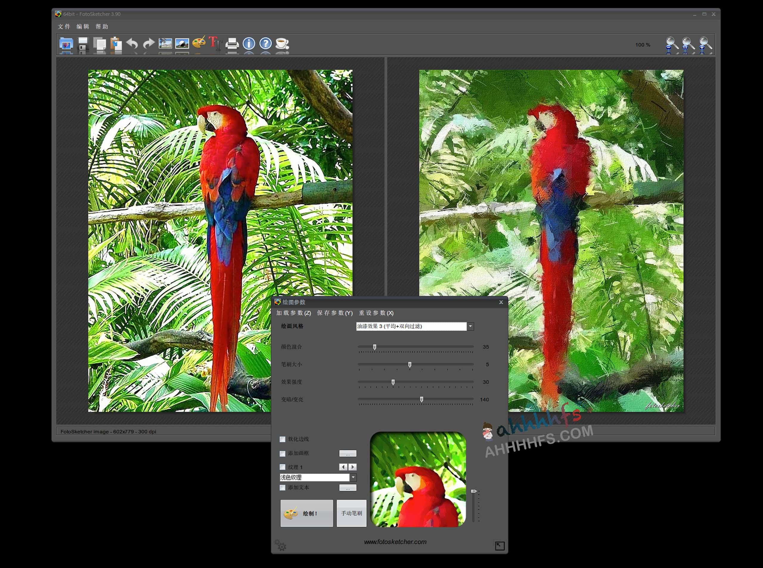 FotoSketcher一款免费照片转绘画风格软件,只需点击几下鼠标即可自动将照片转换为艺术作品。支持从铅笔素描到水彩画或油画、钢笔画、墨水画、抽象艺术和卡通画,有 20 多种不同的风格可供选择,工具还可以修改原始照片增强对比度、锐化、简化图像、增加亮度、颜色饱和度等,或者并添加简单或逼真的框架和文本,支持Windows和macOS。