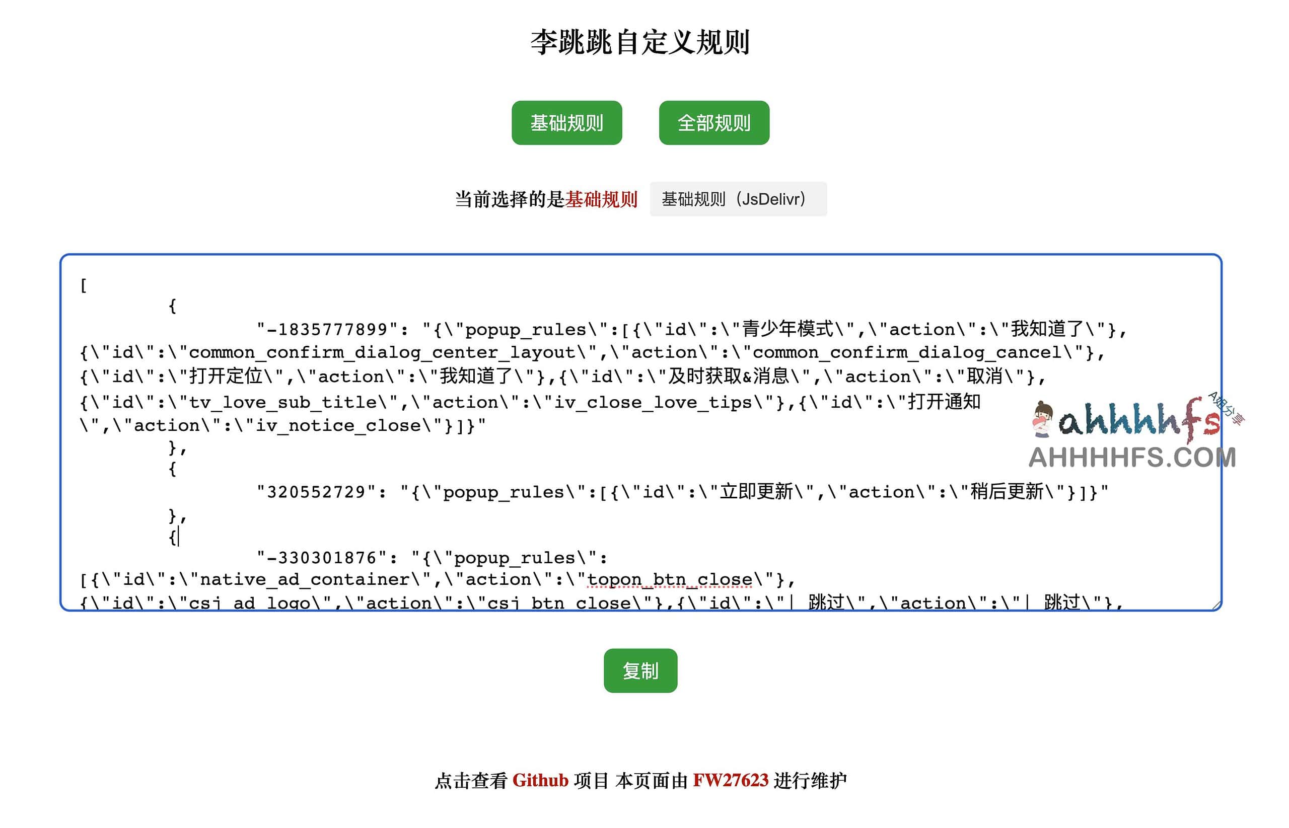 1、前往 李跳跳在线规则页面 复制规则(备用链接)