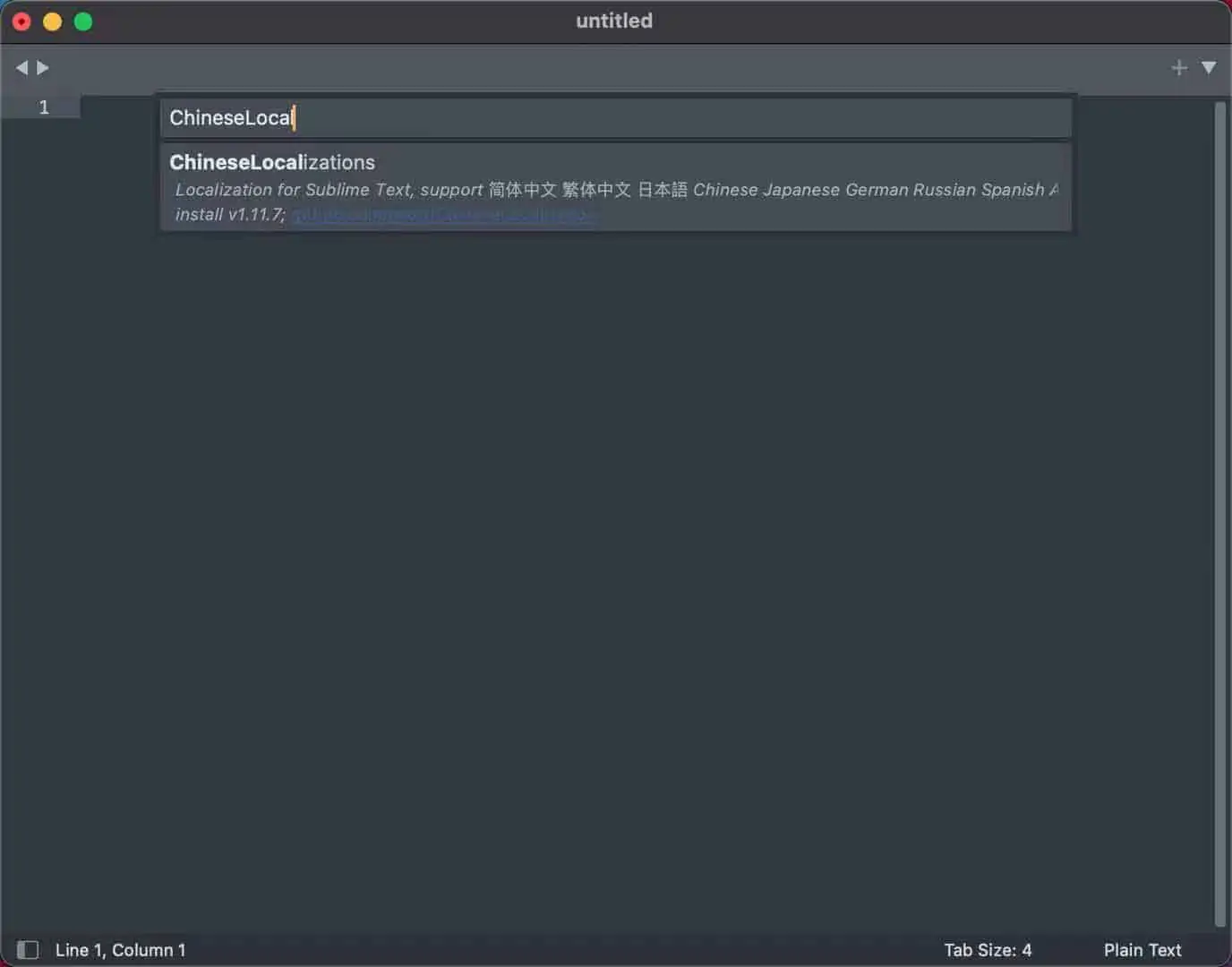 4)输入 ChineseLocalzations 可见中文包!选中即可安装!