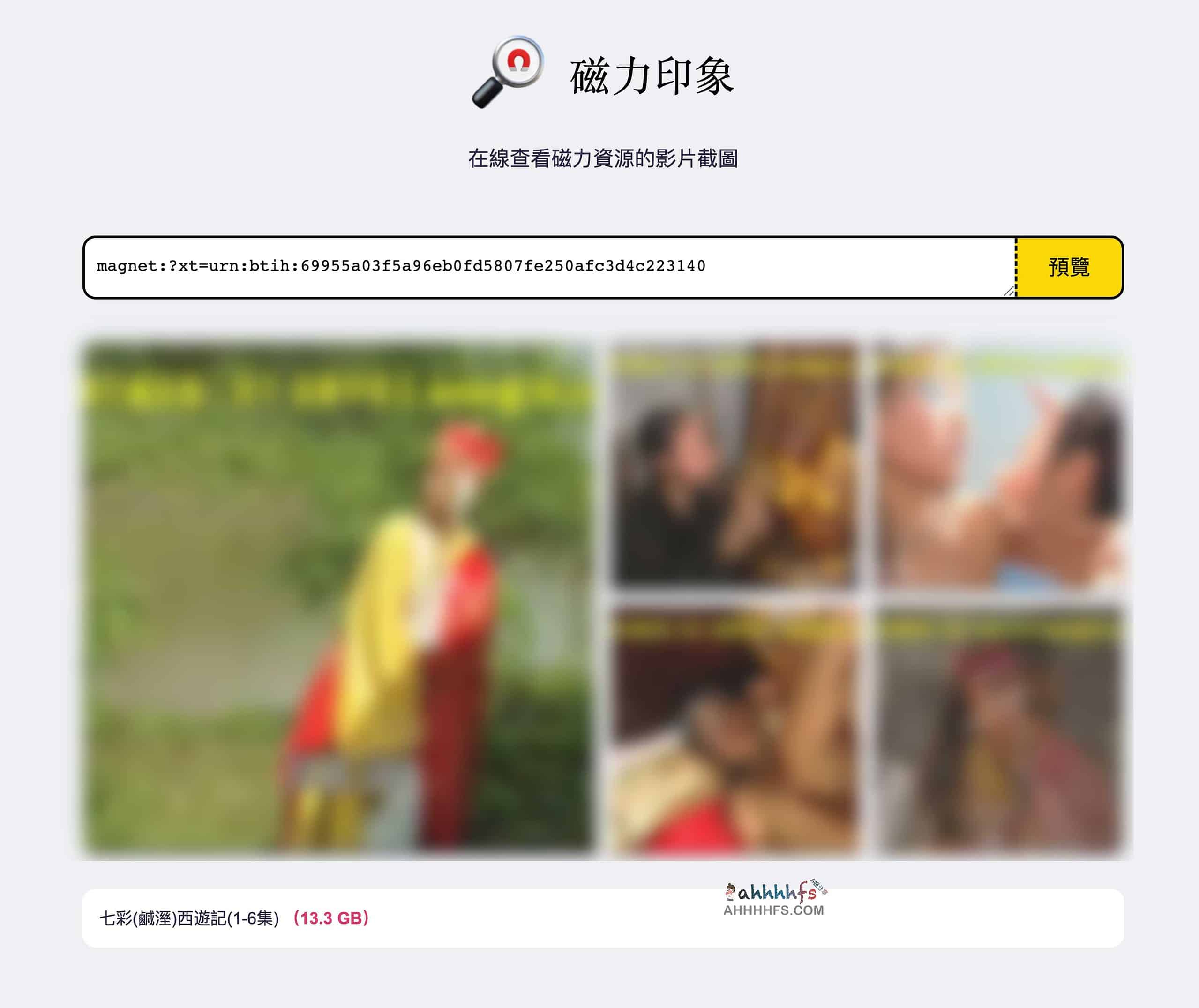 磁力印象是一个磁力资源预览工具,可以在线查看磁力资源的影片截图,平常想要预览磁力资源可以使用这个磁力资源预览工具,直接粘贴磁力资源即可看到磁力内容的截屏,避免下载磁力的时候货不对版,非常不错。