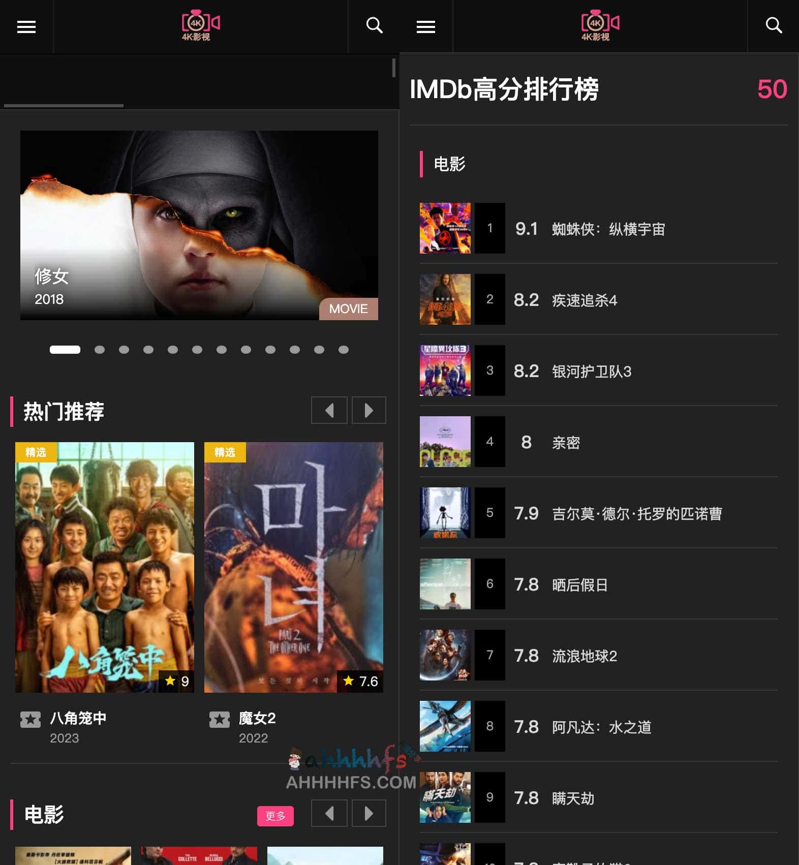 4k影视是一个免费在线高清影视网站,是一个综合性的网站,不断更新电影、影视推荐、精美图片、最新美剧、热门电影等,带给你不一样的网络观影冲浪体验,而且干净无广告,播放流畅,无需注册登录即可在线观看热门影视资源。