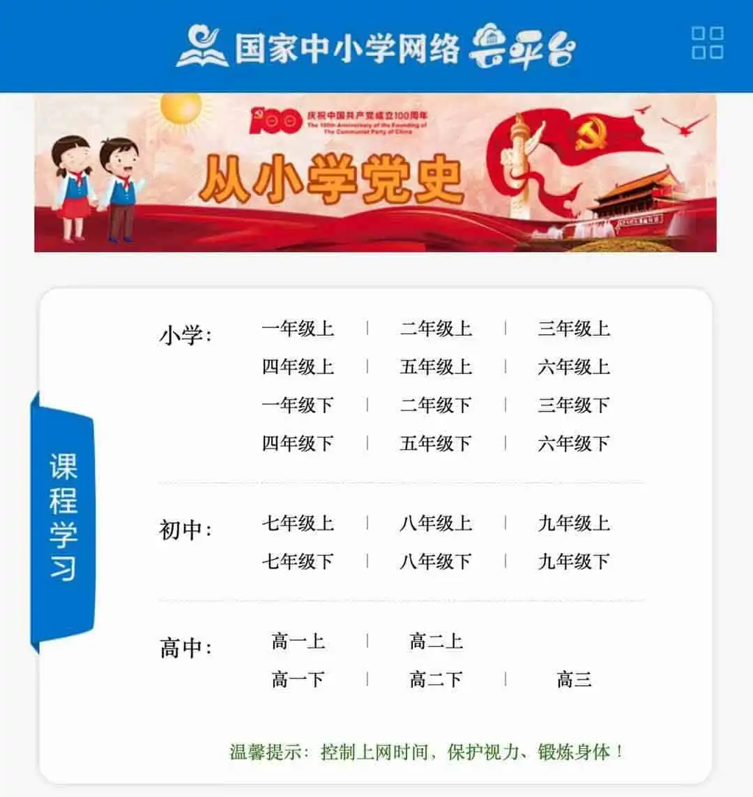 二、平台资源包括:防疫教育、品德教育、课程学习、生命与安全教育、心理健康教育、家庭教育、经典阅读、研学教育、影视教育等资源。根据国家课程方案和各学科课程标准,语文、政治、历史三学科使用国家统编版教材,其他学科使用全国选用人数较多的教材版本。平台资源将陆续更新补充。