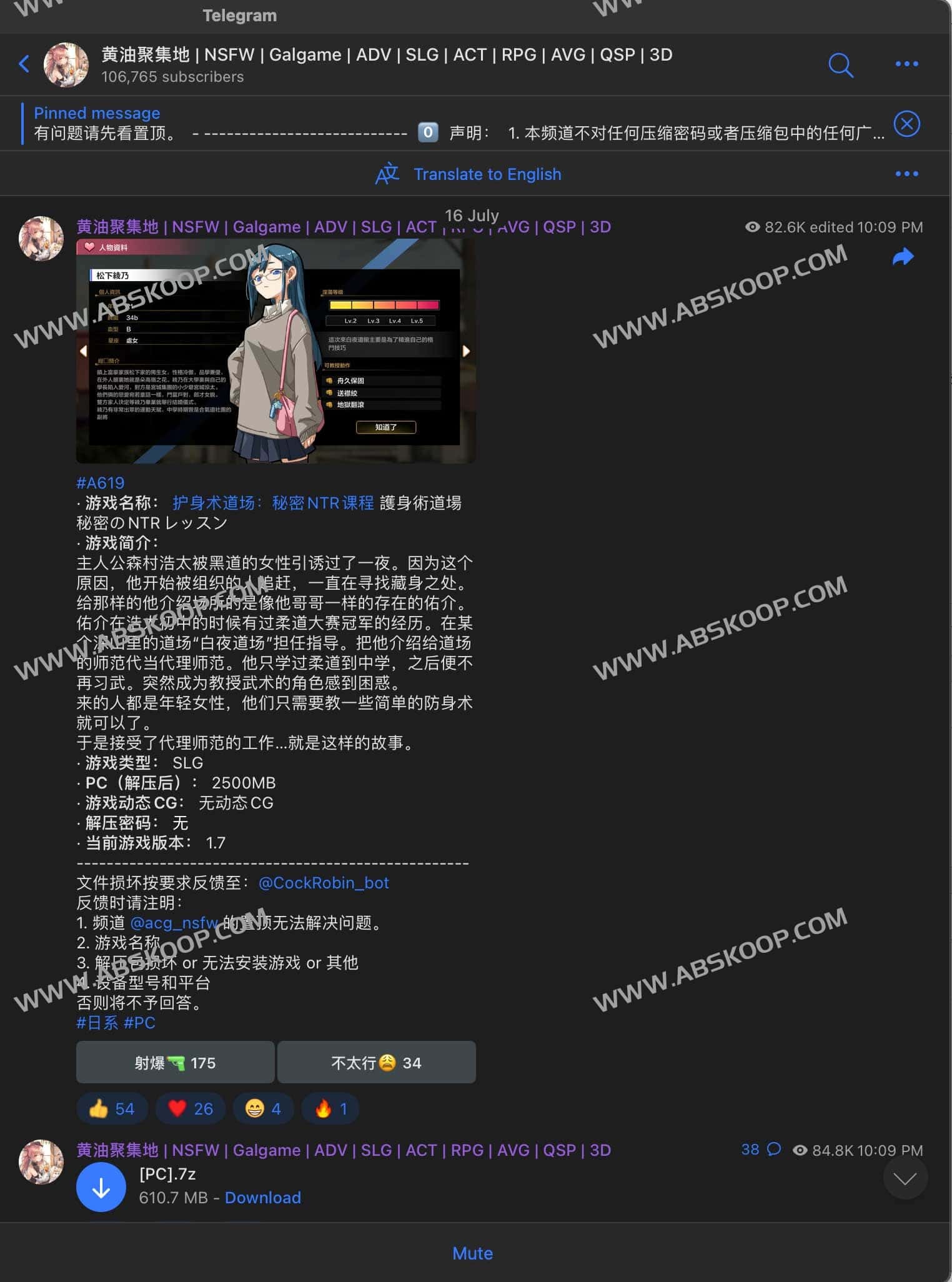 黄油聚集地是一个免费黄油游戏下载Telegram频道,专门收集发布黄油游戏、Galgame 、 ADV 、 SLG 、 ACT 、RPG、AVG 、 QSP等相关游戏资源,包括PC和安卓版的,而且telegram频道也比较干净,专注发布黄油游戏资源,暂时没有其他奇怪的东西,感兴趣的同学可以到频道学习。