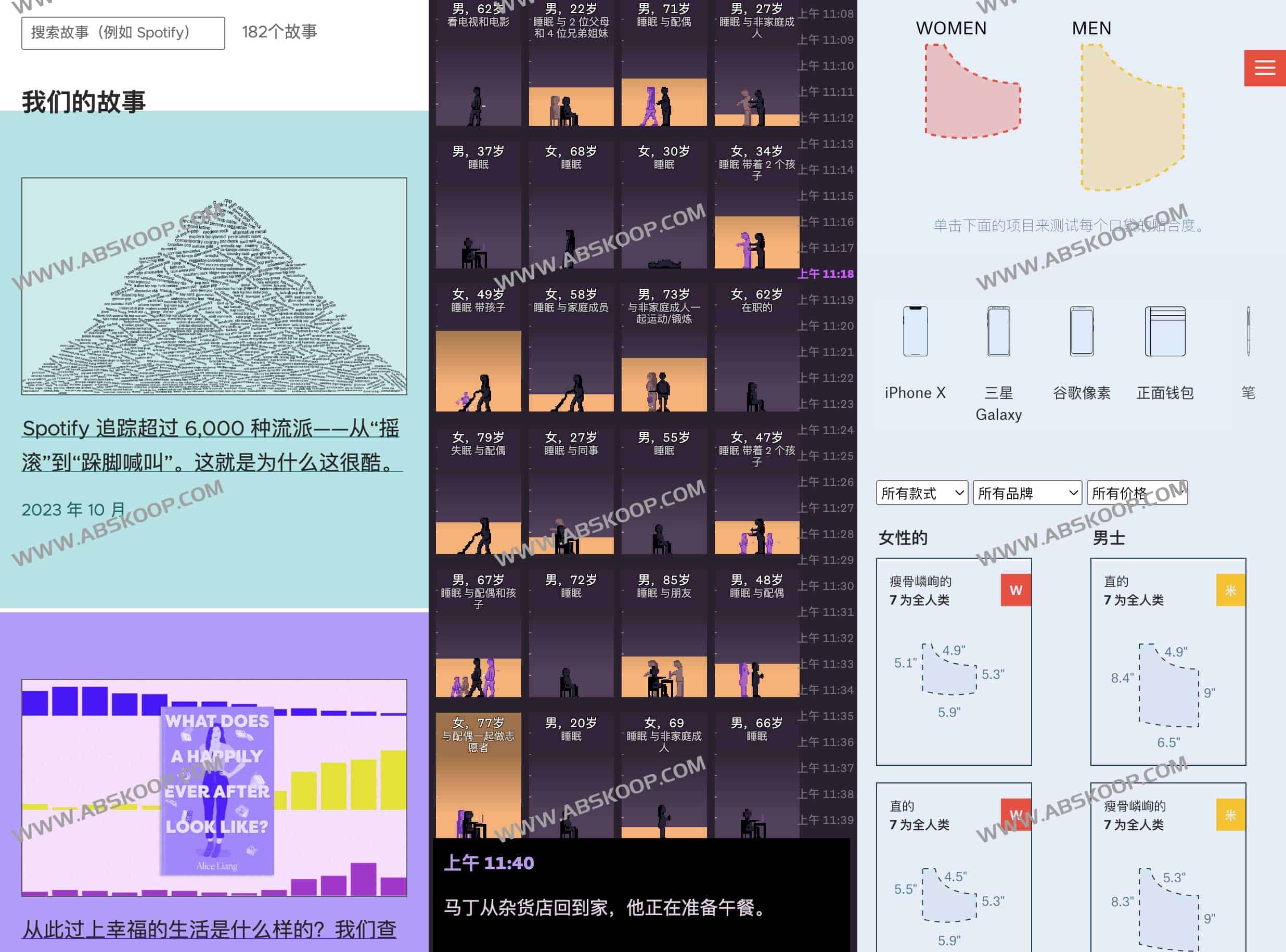The Pudding是一家数字出版商,制作了一个在线数据可视化网站,利用讲故事的形式,强调数据可视化,并且比传统新闻使用更少的文字,把新闻、文章等等通过数据可视化形式展现出来,非常生动有趣,目前网站已一共制作了182个故事/数据可视化。