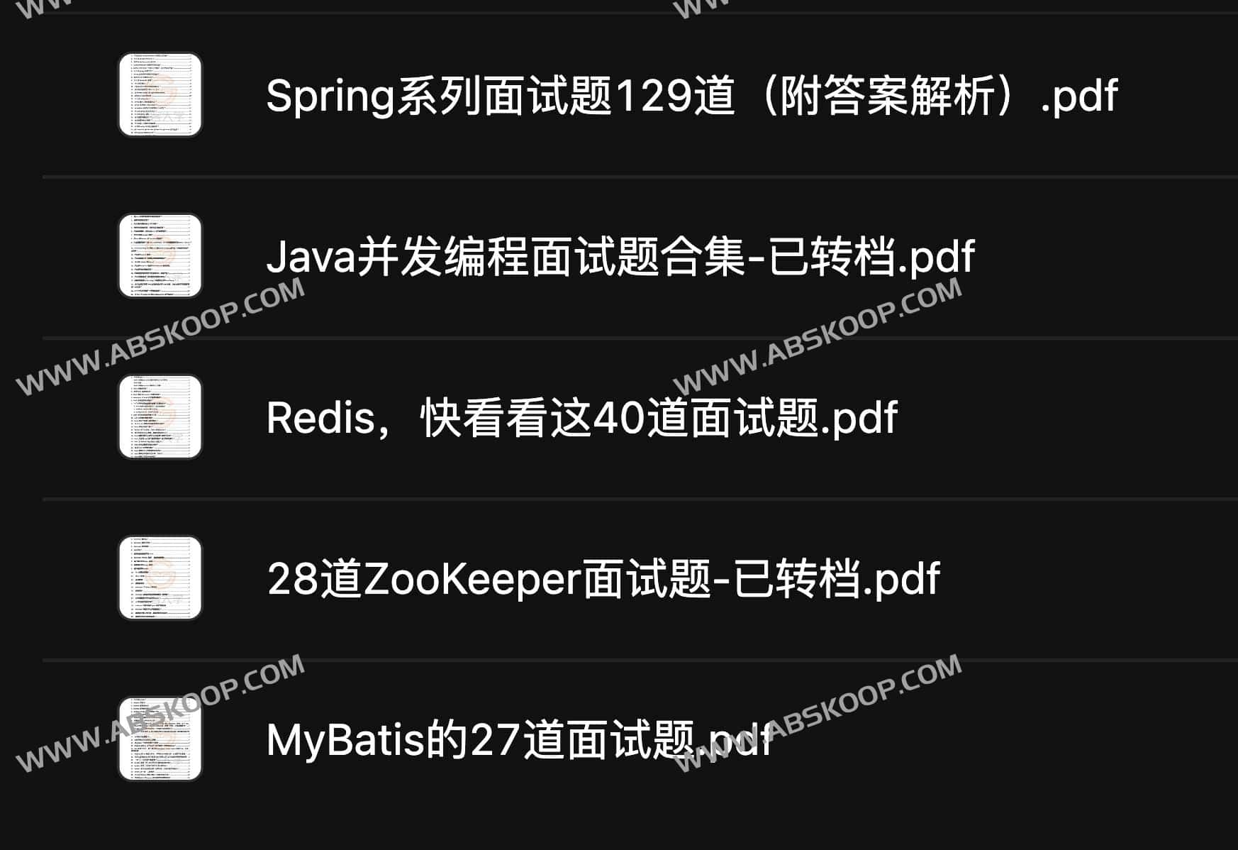大厂Java面试 300 题,包含Spring系列面试题129道(附答案解析) 、Java并发编程面试题合集、Redis快看看这40道面试题 、28道Zo0Keeper面试题和MyBatis的27道面试题,阿里云盘和夸克网盘资源下载。