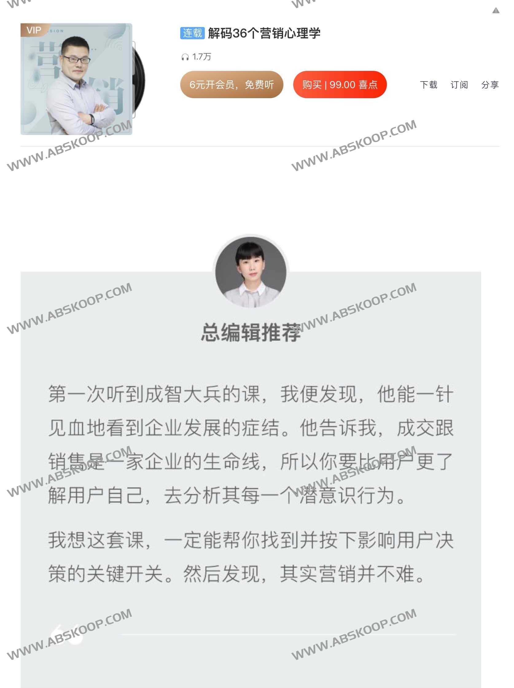 解码36个营销心理学全集,喜马拉雅商业财经VIP在线收听课程,夸克网盘资源下载。
