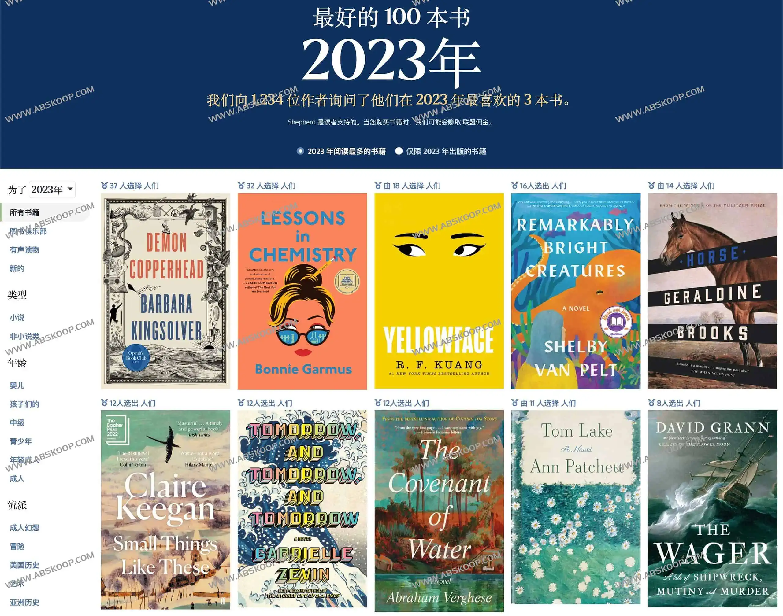 Shepherd是一个在线浏览发现最好的书籍网站,如果你正在寻找2023 年最佳书籍?可以看看这个网站,目前向 1200 多名作者和超级读者询问了他们 2023 年最喜欢的 3 本书,然后将结果按小说、非小说、有声读物和读书俱乐部书籍进行细分。 另外,还有神秘、惊悚、奇幻、科幻、浪漫、历史小说、历史、商业、真实犯罪、恐怖等类型! 以及婴儿、儿童、中学生、青少年、青年和成人等年龄段的书籍,感兴趣的可以到网站阅读学习。