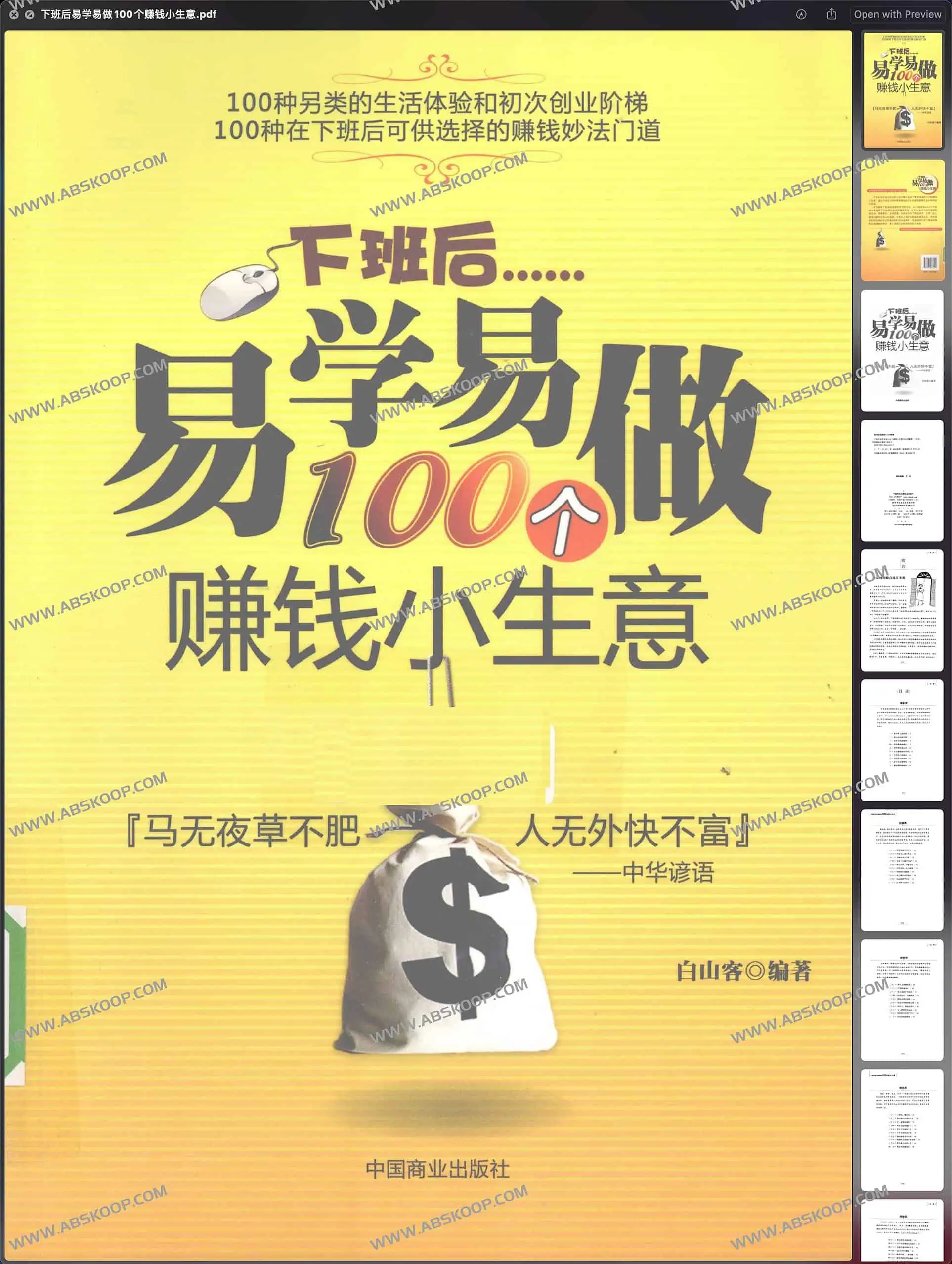 下班后易学易做100个赚钱小生意,是一本书,PDF格式,阿里云盘和夸克网盘资源下载。