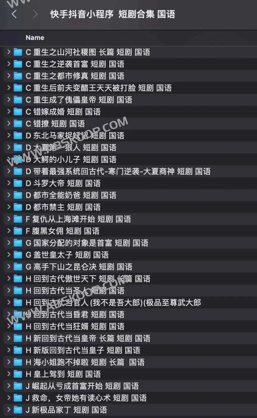 快手抖音小程序 热门爽文短剧合集 国语,按照字母排序打包整理,阿里云盘和夸克网盘资源下载。