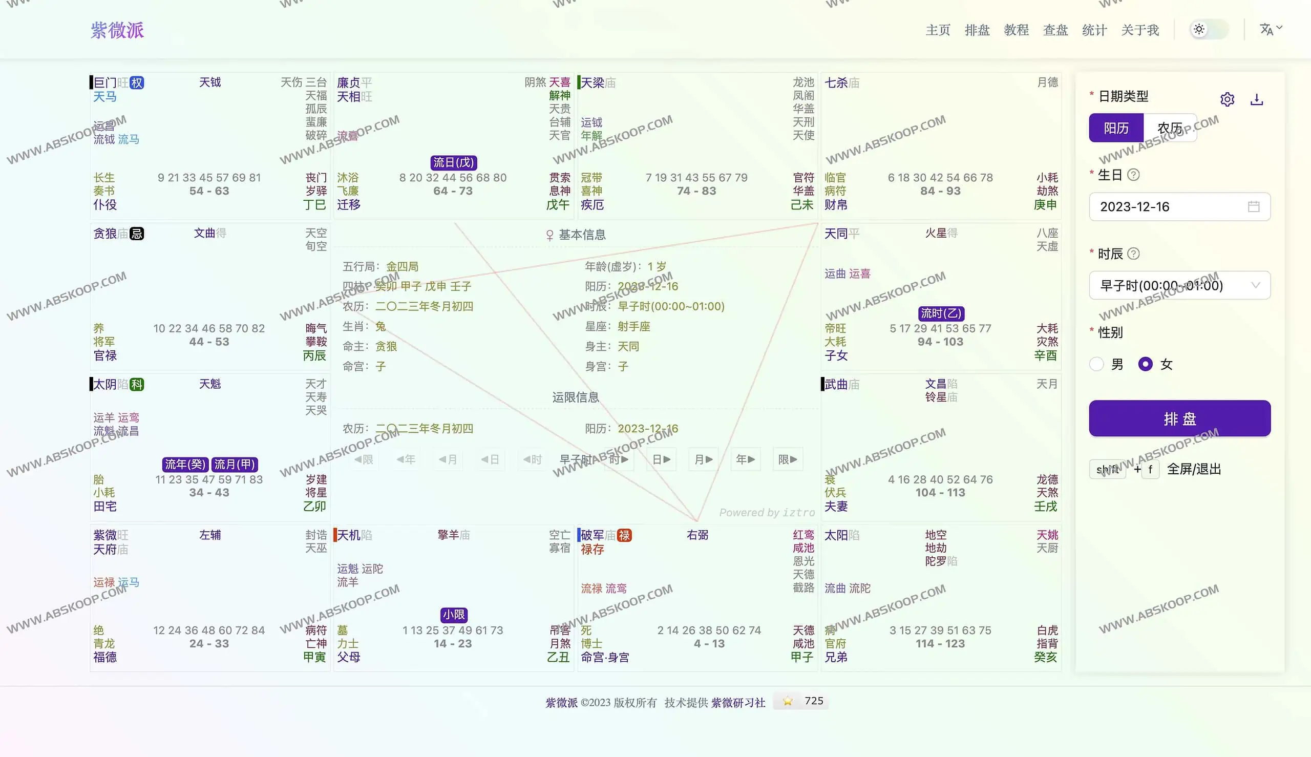 iztro是一套支持多语言、轻量级获取紫微斗数排盘信息的javascript开源库,通过传入出生日期、时间、性别,输出对应的紫微斗数星盘信息,除此之外,还提供获取运限(大限,小限,流年,流月,流日,流时)的数据、获取流耀(大限和流年的动态星耀)等等功能,支持多语言混合输入,输出指定语言数据,感兴趣的同学可以学习研究。