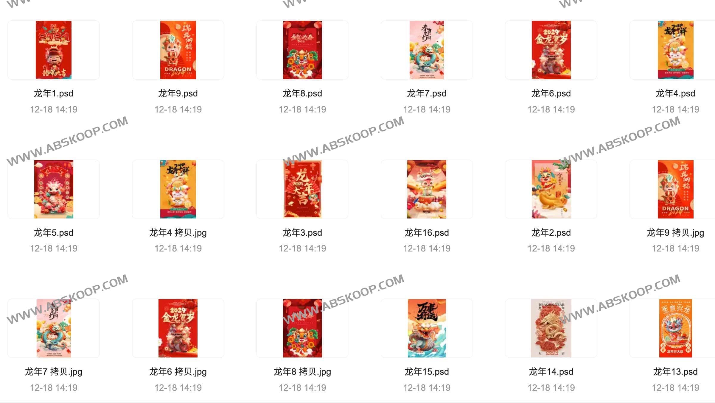16套 2024龙年PS海报设计素材,包含预览图片和psd设计源文件,阿里云盘和夸克网盘资源下载。