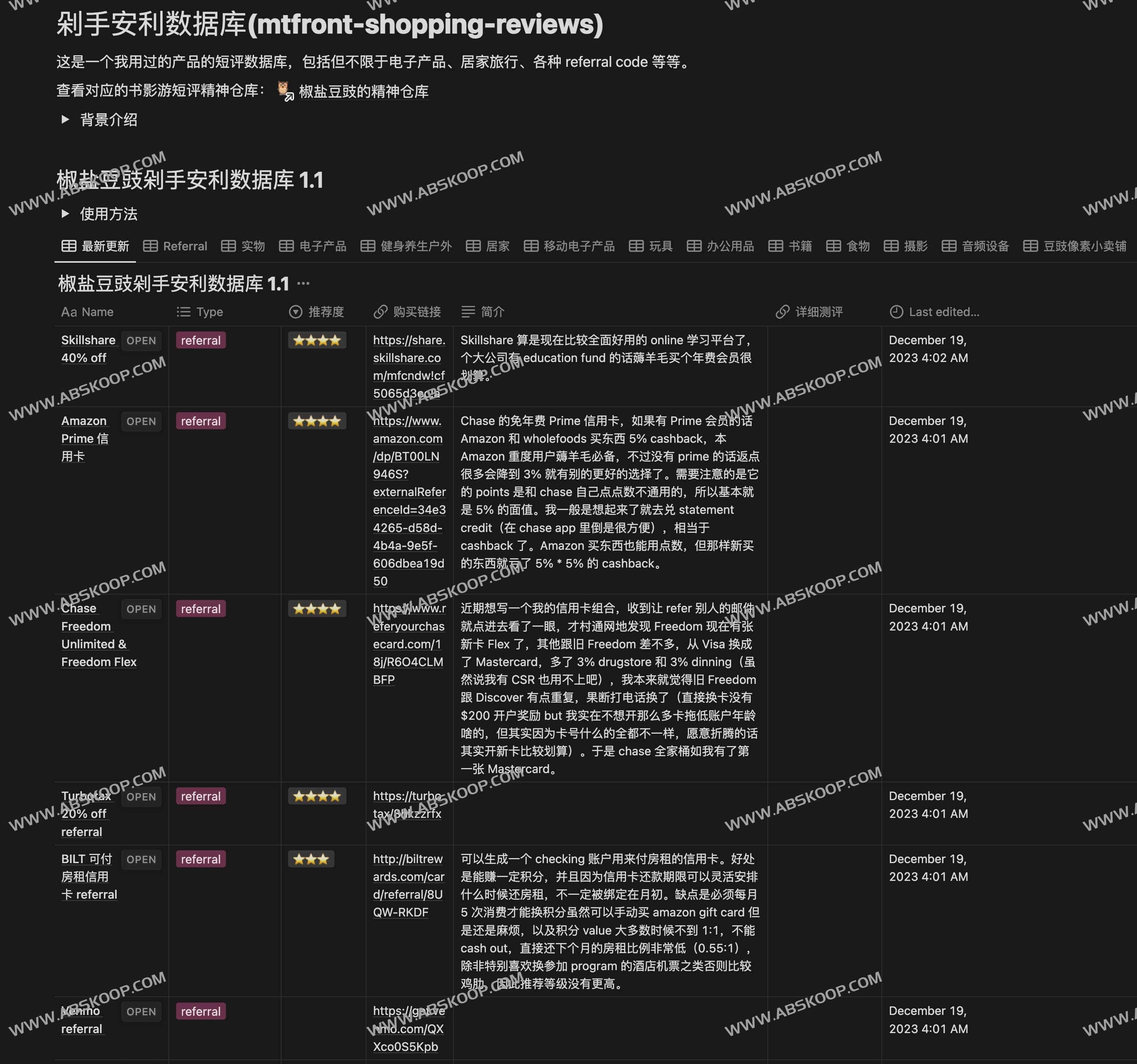 地址:剁手安利数据库(mtfront-shopping-reviews)