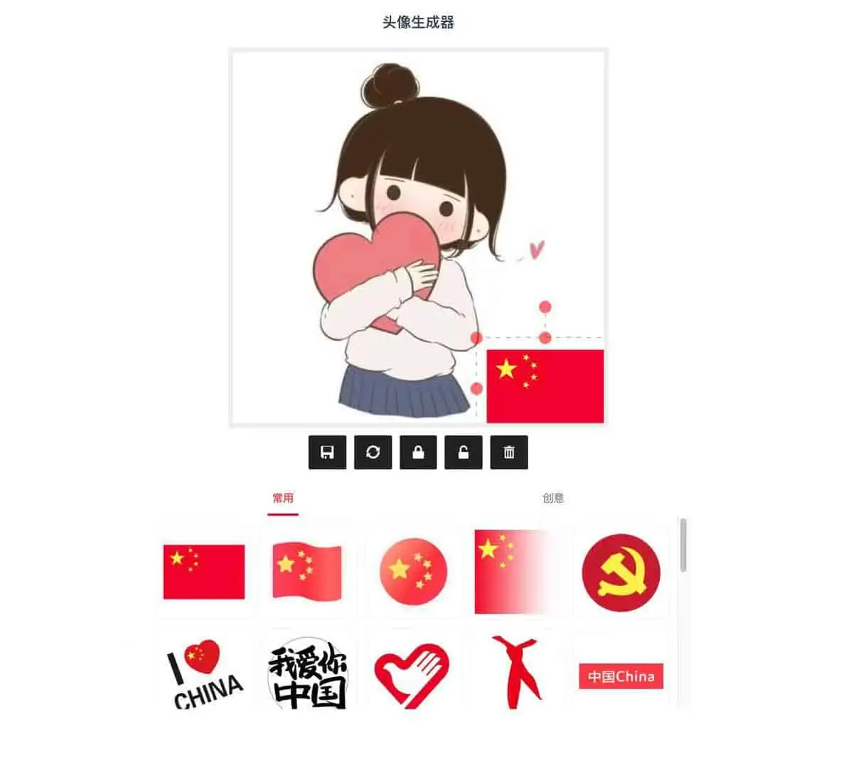 推荐一个个性头像生成的网站,也可以生成国庆头像,支持图标任意位置摆放