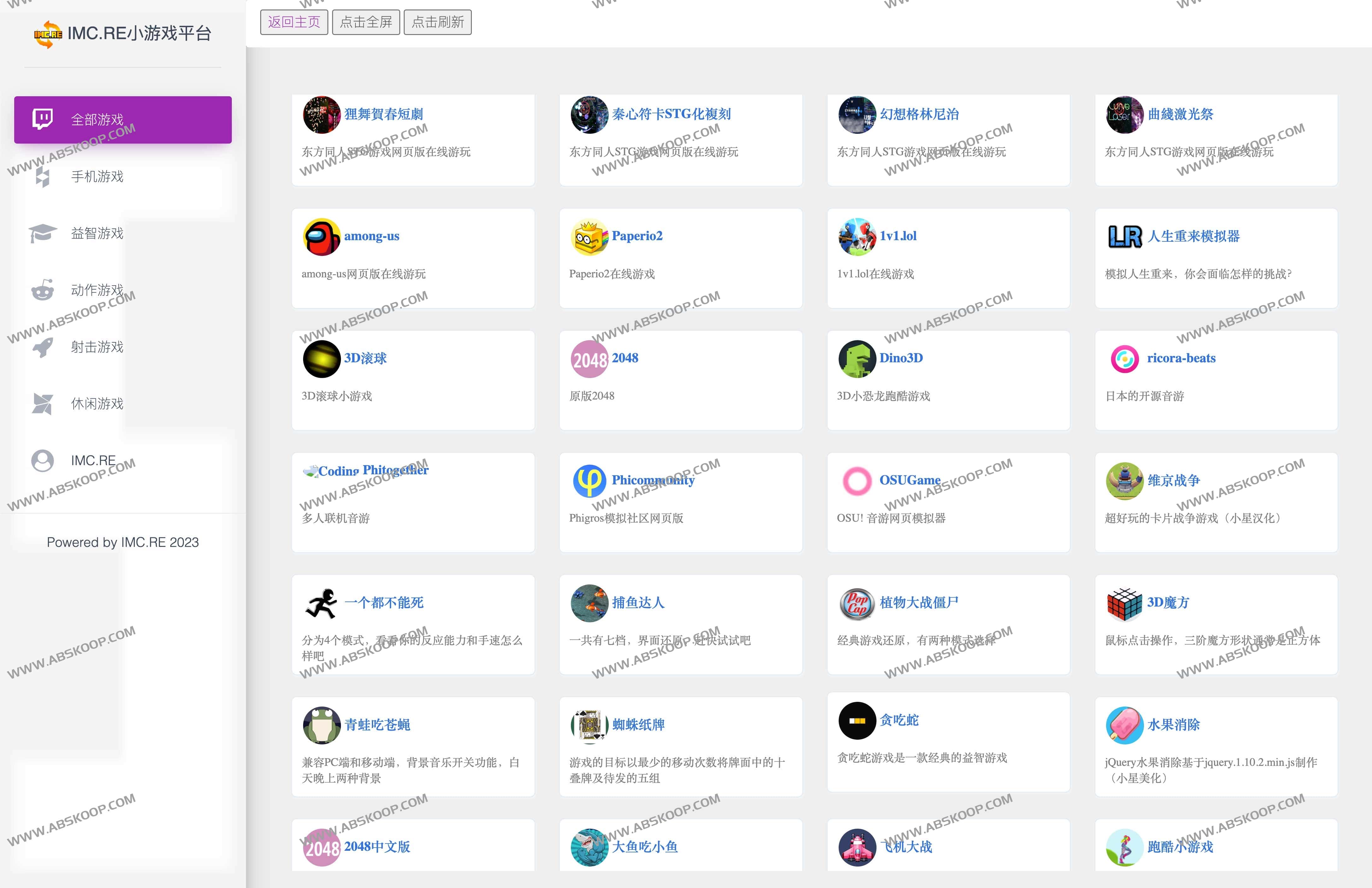 IMC RE小游戏平台是一个在线经典小游戏网站合集网站,收集了各种类型的小游戏,包括手机游戏、益智游戏、动作游戏、射击游戏、休闲游戏等等,直接打开网站即可体验,采用响应式布局设计,自适应手机移动端,用户体验更好。