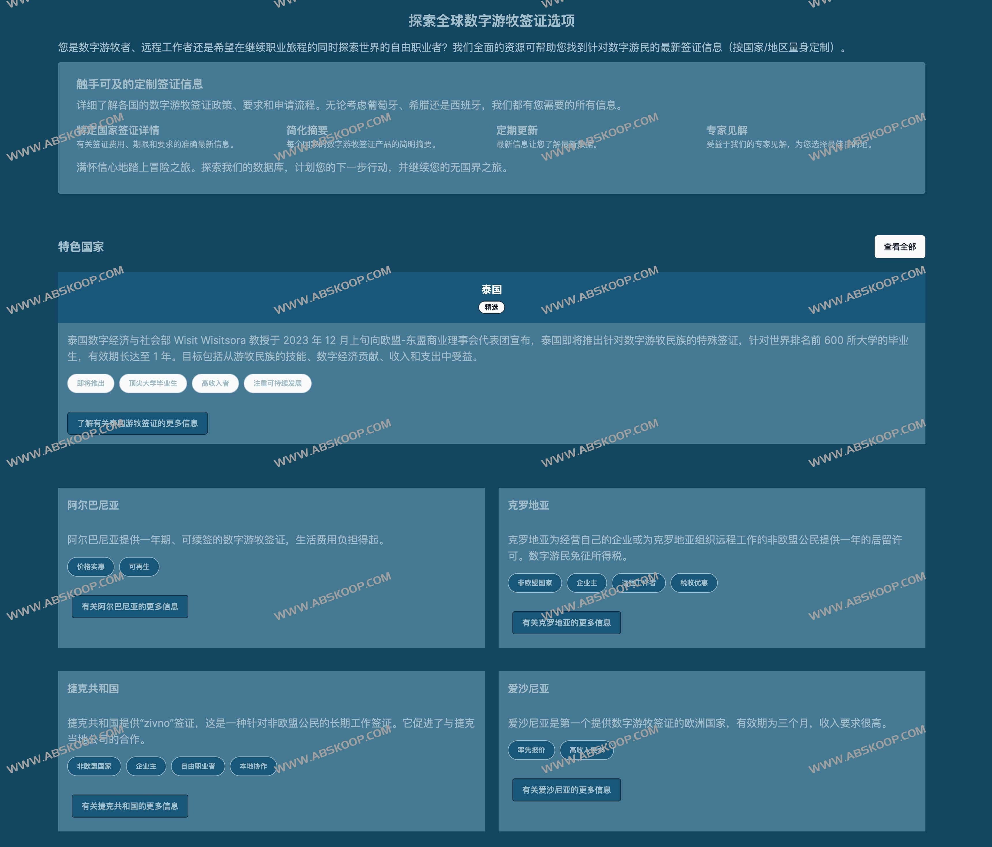 NomadVisa是一个全球数字游民签证大全网站,如果你是一位数字游民、远程工作者或自由职业者,希望在继续职业生涯的同时探索世界吗?这个全球数字游民签证大全网站可帮助你找到针对数字游民的最新签证信息,可以根据国家定制,也可以订阅更新,包括有关签证费用、期限和要求等等准确最新信息。
