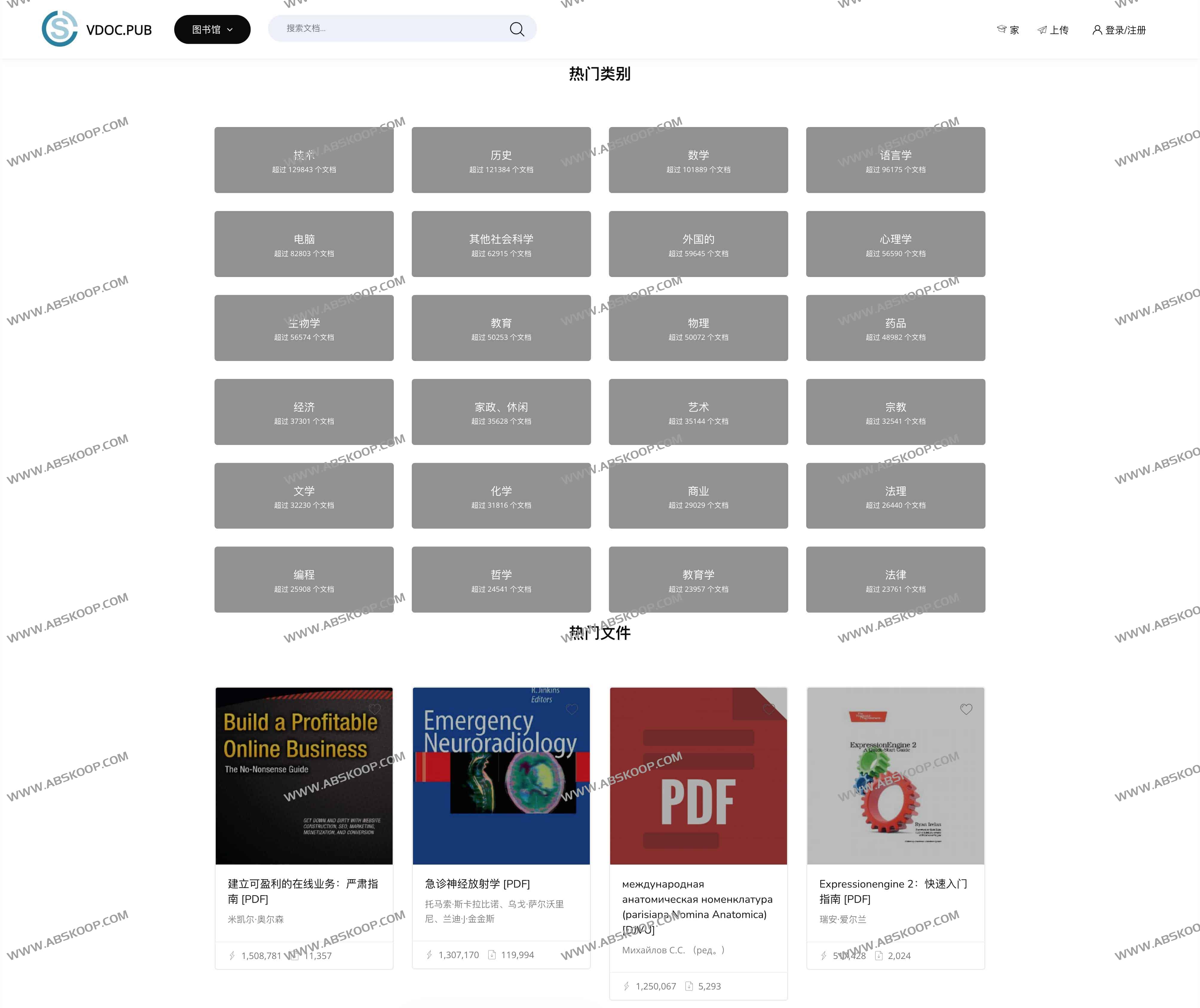 VDC PUB是一个在线免费英文电子书下载网站,网站为学生提供数十万本免费电子书和文档,全部都是免费且可下载的,包括技术、历史、数学、语言学、心理学、经济、艺术、编程等等各种类型的电子书资源,而且下载都无需注册登录直接下载PDF文档,非常方便快捷,是一个不错的英文电子书下载网站,英文电子书库。