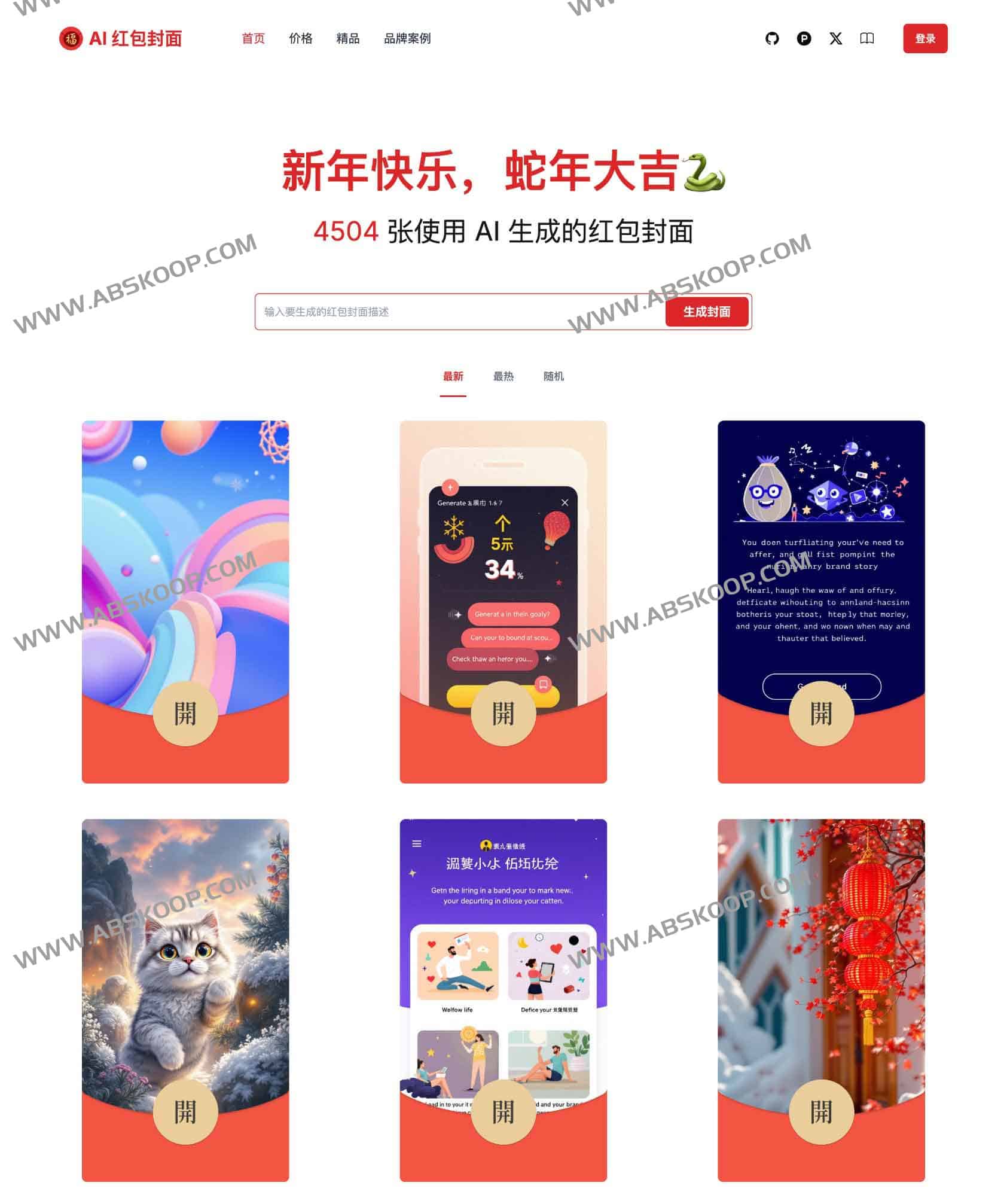 AI Cover是一款开源AI 红包封面生成器,利用 AI 技术生成高清精美的微信红包封面图片,只需要输入想要生成的红包封面描述,即可在线生成对应的微信红包封面照片,而且尺寸都是通用的,直接在微信红包后台上传使用即可,不过使用需要注册用户,没有试用额度。