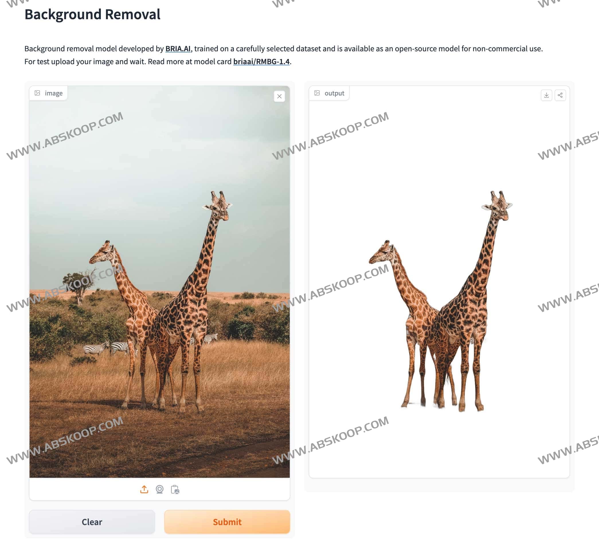 BRIA Background Removal(BRIA 背景去除)是由 BRIA.AI 开发的开源照片背景去除模型,经过在精心挑选的数据集上的训练,并可作为非商业用途的开源模型,旨在高效地将各种类别和图像类型的前景与背景分离,提供在线演示,只需上传一张照片即可快速去除照片背景。