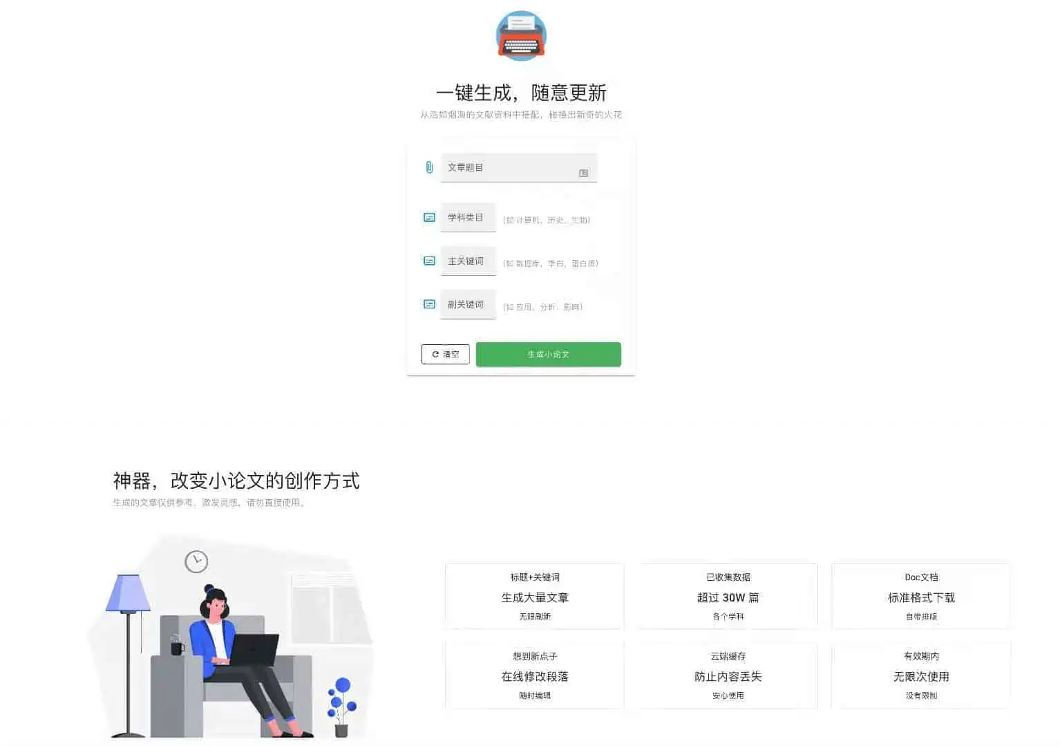 1. 输入 标题 + 关键词 即可生成 小论文。